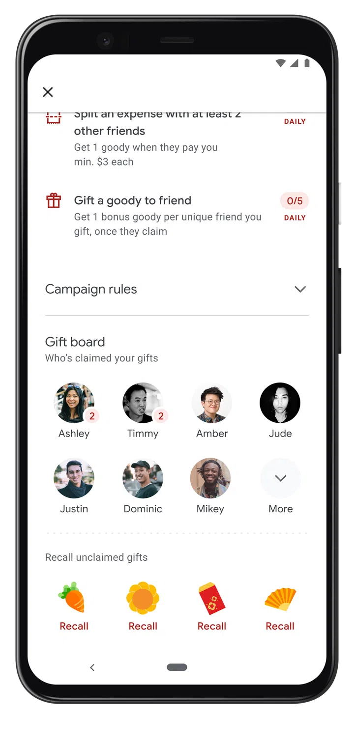 - Split an expense inside Google Pay app with at least two other people, and receiving a minimum of S$3 from each person