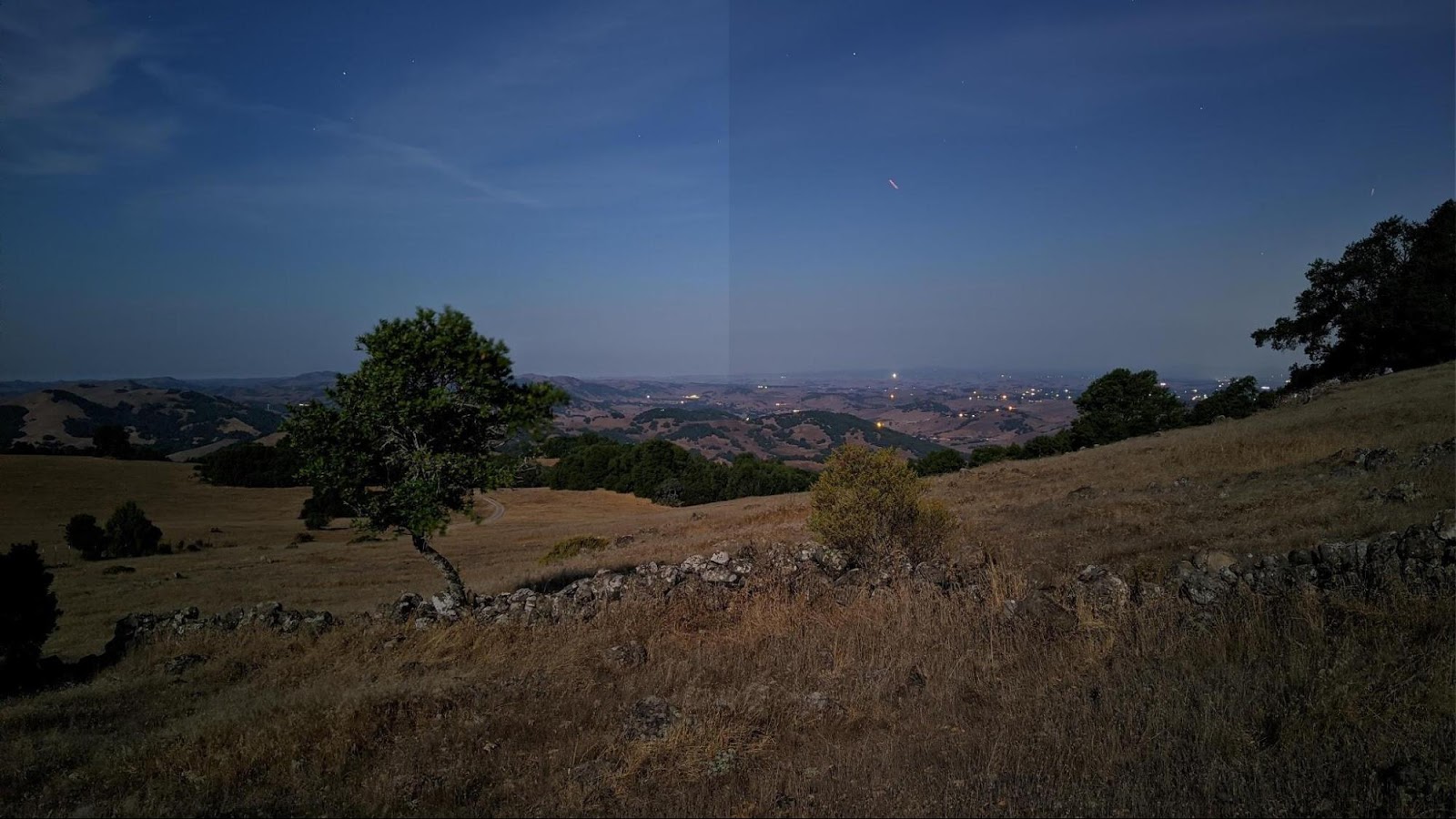 Another issue is scene composition, where it becomes more challenging to show details of the landscape itself at night. Usually, the viewfinder is updated at least 15 times a second, so frame exposure time is limited to just 66 milliseconds. That's hardly enough time to capture enough light, which means the landscape looks really gray. Google solved this by deploying a "post-shutter" viewfinder, displaying each long-exposure frame on screen as soon as it has been captured. This clears up the scene on the viewfinder and helps you compose a shot more easily.