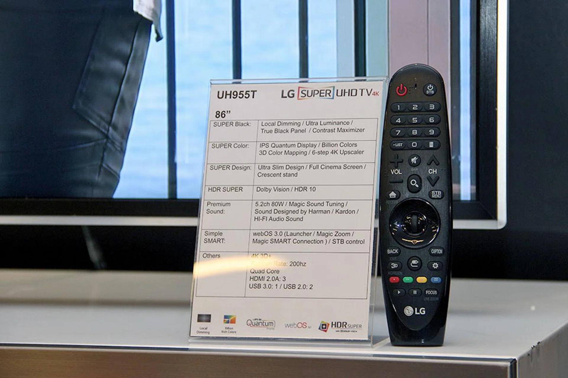 The UH955T is basically the 86-inch version of the UH95 series. However, with a panel this big, it can't be made as thin as the 65-inch UH950T.