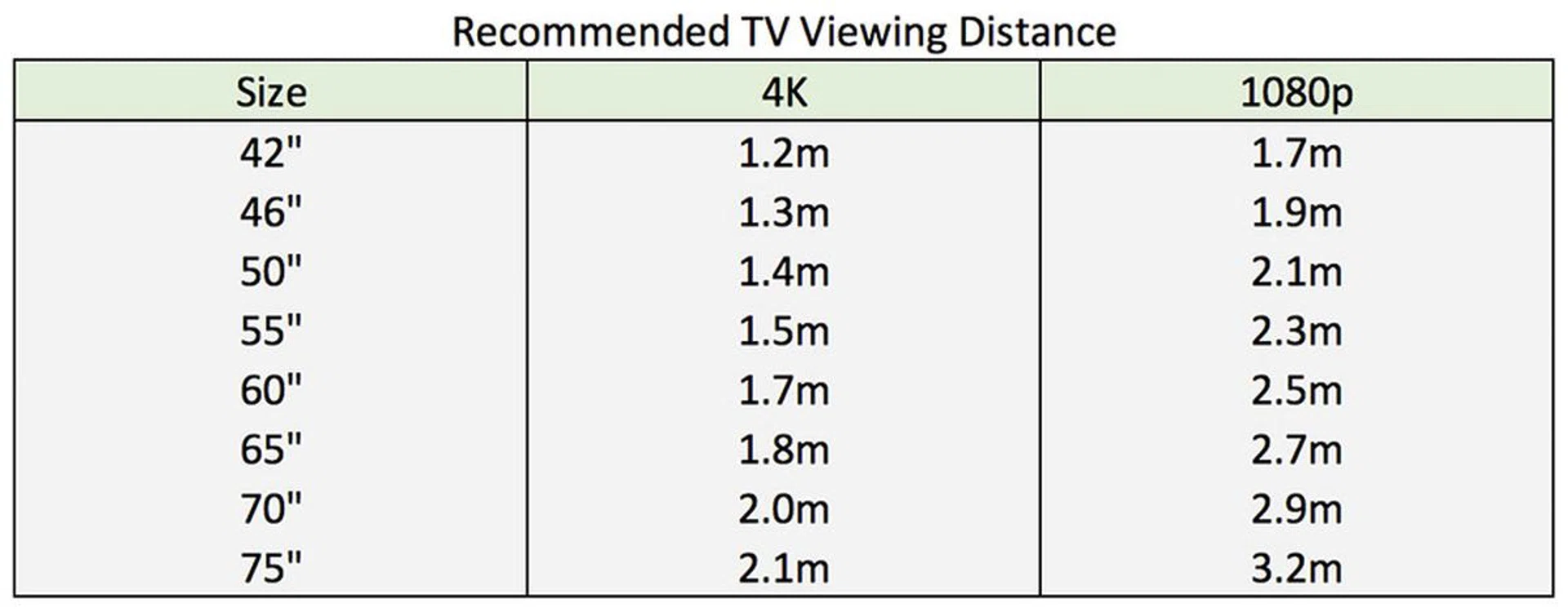 You can see from the table that compared to 1080p, you’re advised to sit closer for 4K sets. This is so you can see the extra details the 4K resolution brings. If you’re able to sit close enough, the visual difference is definitely noticeable.