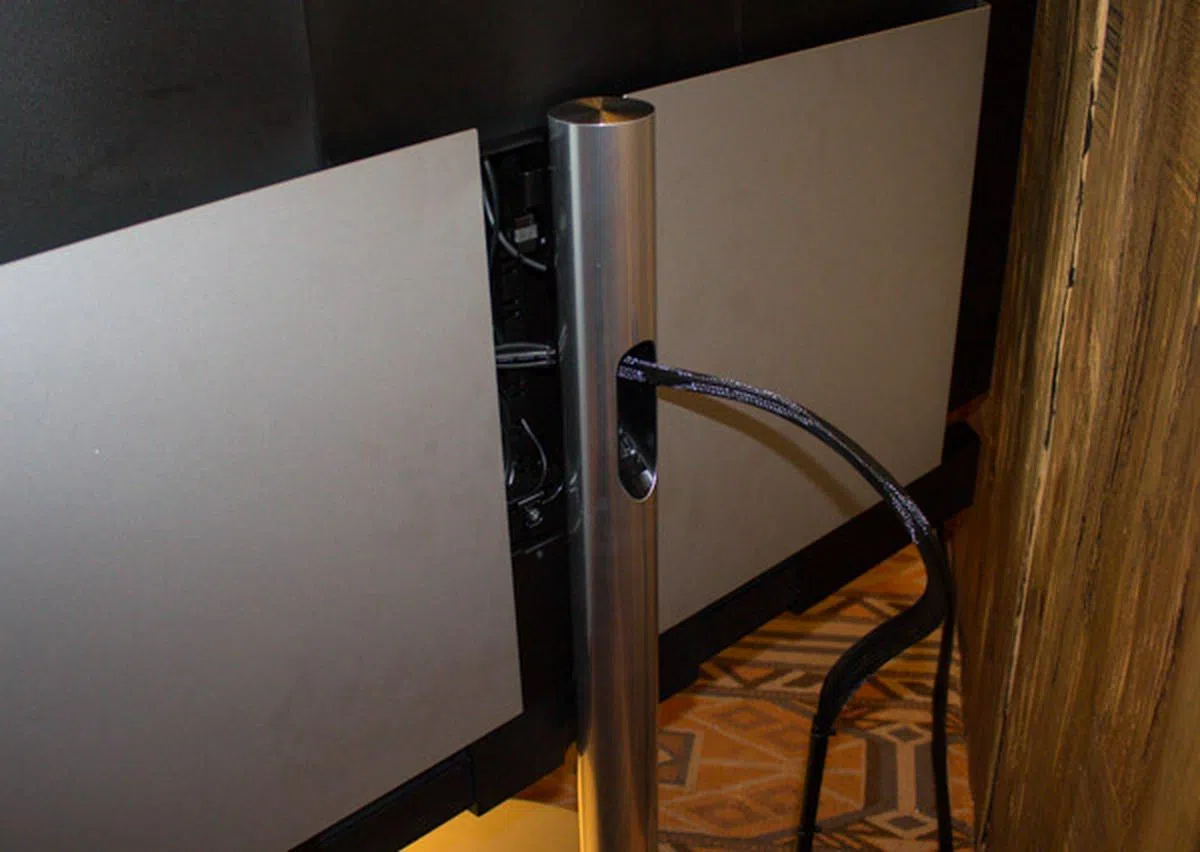 All the ports and cabling are hidden in the back of the TV, so only the power cable is visible on the outside. The WiSA (Wireless Speaker and Audio) standard is also used by the BeoVision Avant to connect to wireless speakers like the BeoLab 20. This provides 24-bit uncompressed audio for superior sound, and further reinforces the cable-free concept. In addition, Spotify and Deezer play natively; and we were told that access to more than 70,000 Internet radio stations worldwide is built-in into the TV.