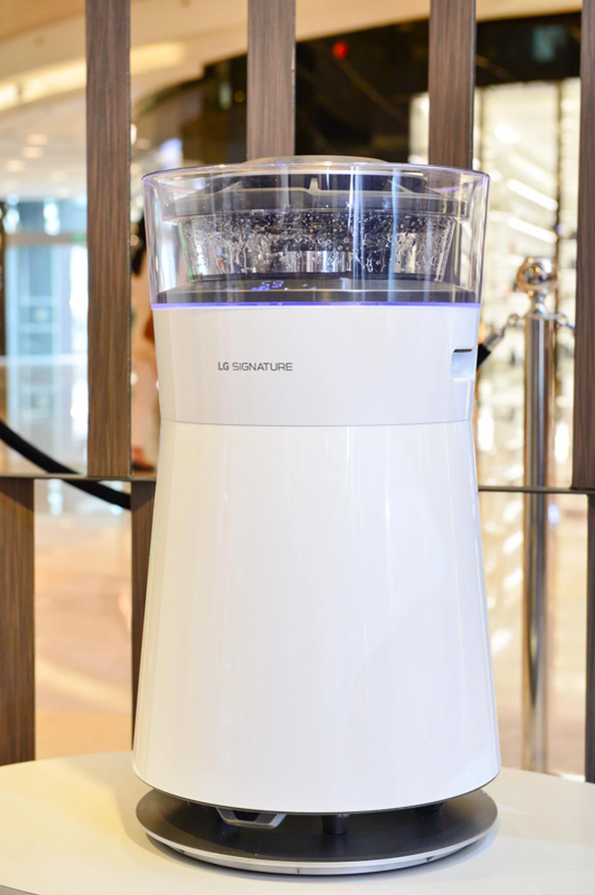 Besides purifying the air, the LG Signature Air Purifier also humidifies it. A water system filters out chemicals and contaminants while infusing moisture into inhaled air for an optimal humidity level. A transparent ‘Rain View Window’ on top of the Air Purifier lets you see the humidification process at work.