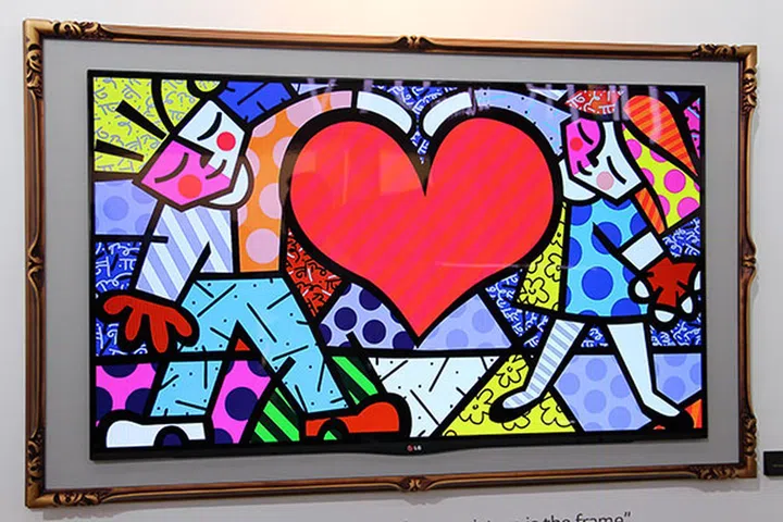 The LG Gallery OLED TV is a 55-inch OLED TV. What's unique about it is that it's wall-mountable and it uses a faux art mat and picture frame to hide its speakers.