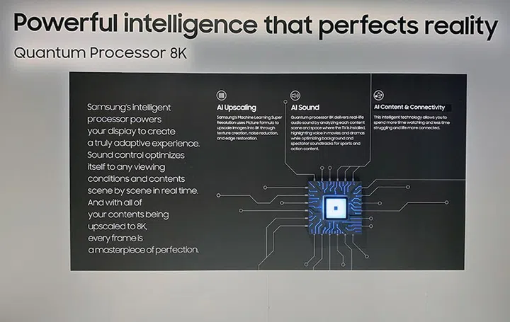 The main difference between the 4K and 8K QLED TVs (other than resolution) is the latter come with a more powerful Quantum Processor 8K, which is responsible for upscaling HD and 4K content to 8K-like quality. They also have a peak brightness of 4,000 nits. HDMI 2.1 is also confirmed for the 8K models.