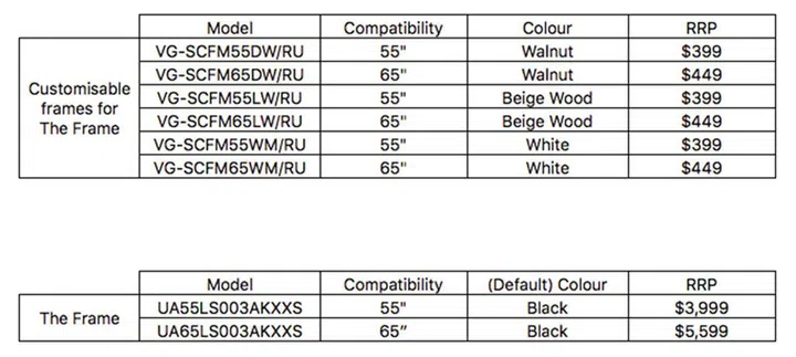 Available in 55 and 65-inch screen sizes, The Frame can be fitted with different frames to blend in with its surroundings. Three different colored bezel options (walnut, beige wood, and white) are available, as well as an optional Studio Stand if you prefer the art on easel look. By default, the TV has black bezels.