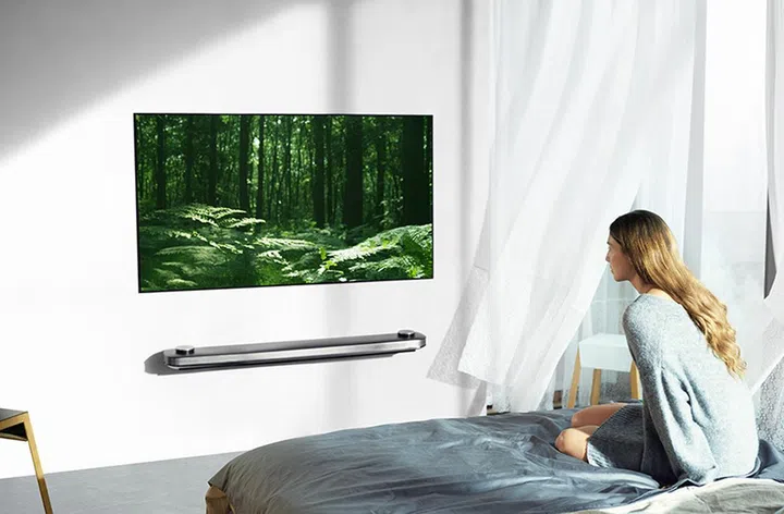 While the display offers all the stunning benefits of an OLED display, the speaker bar presents the power of Dolby Atmos surround sound. The 4.2 channel 60W speakers engulf the space with sound that comes from all around, filling your home with acoustic detail. The speaker bar also acts as an all-in-one box to house all of the W’s image processing system and input/output connections, reducing clutter in your living space.