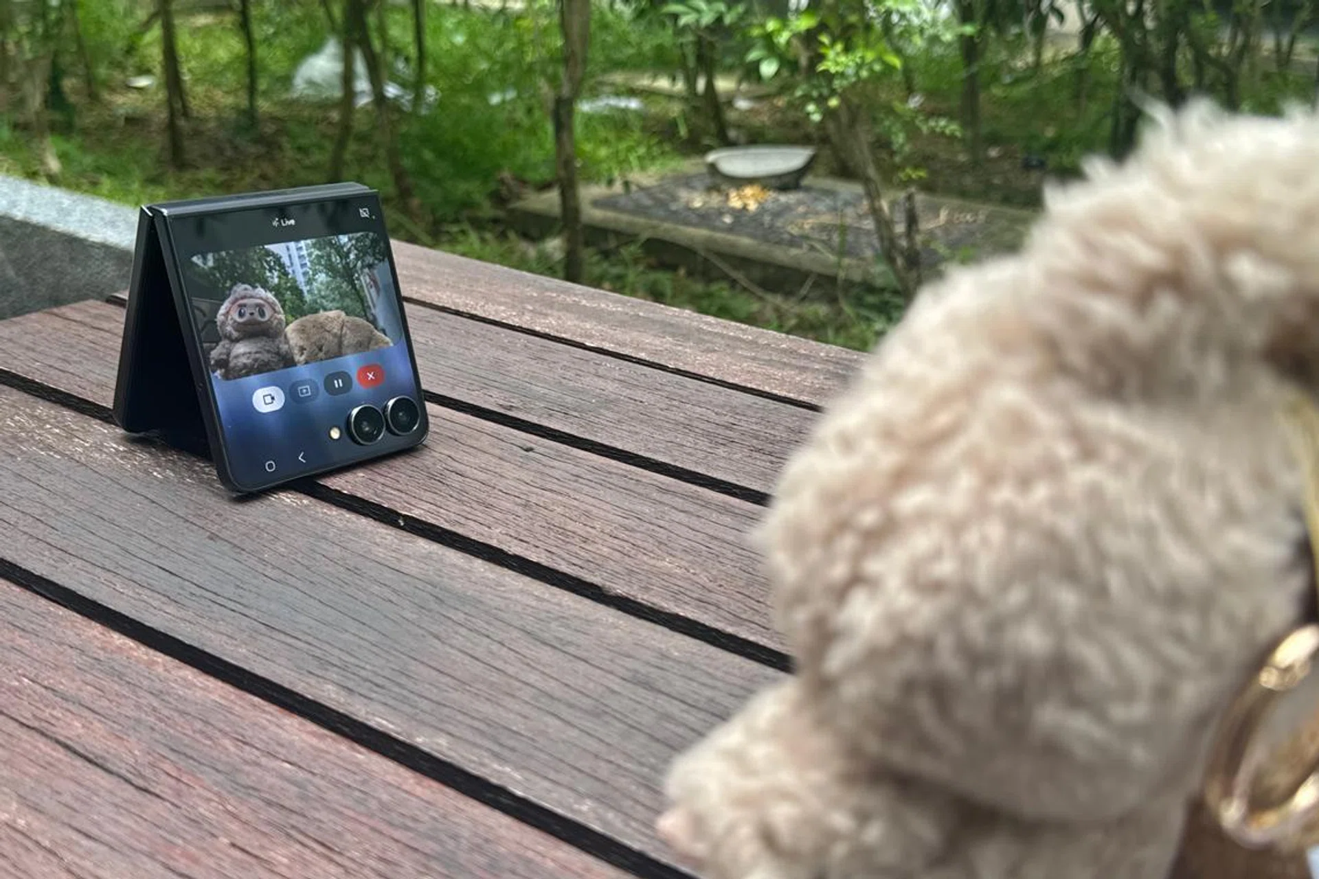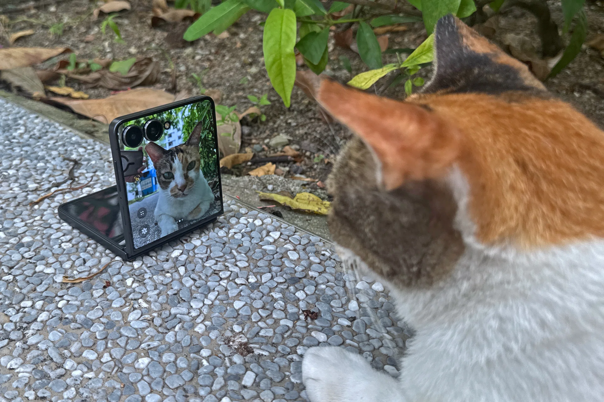 Samsung Galaxy Z Flip7’s FlexCam. Cat not included.