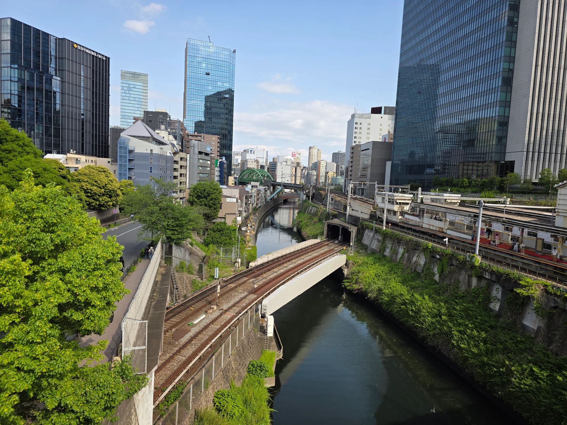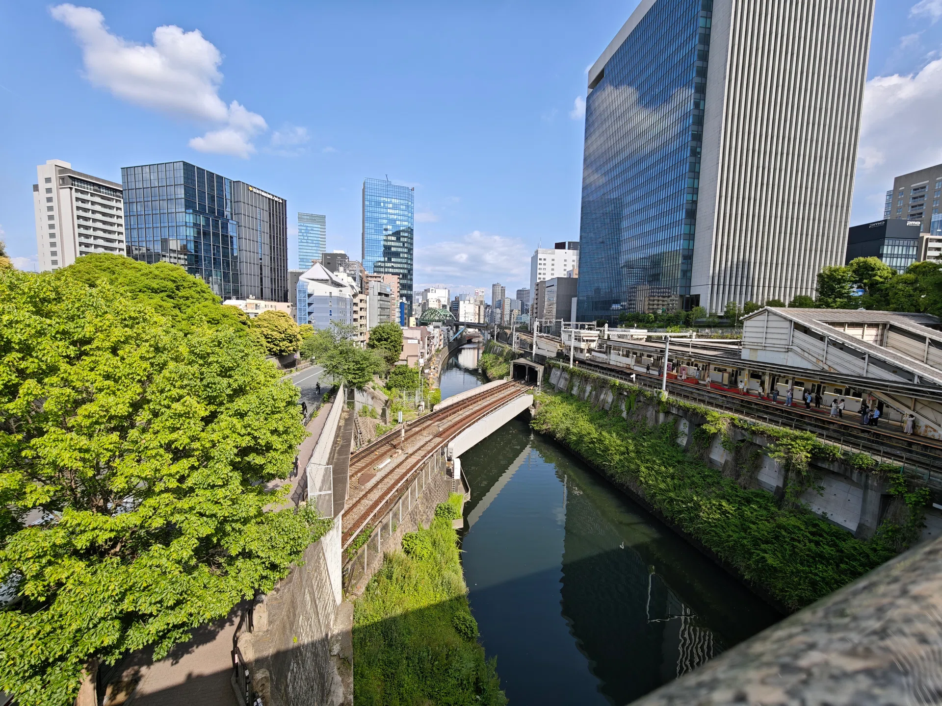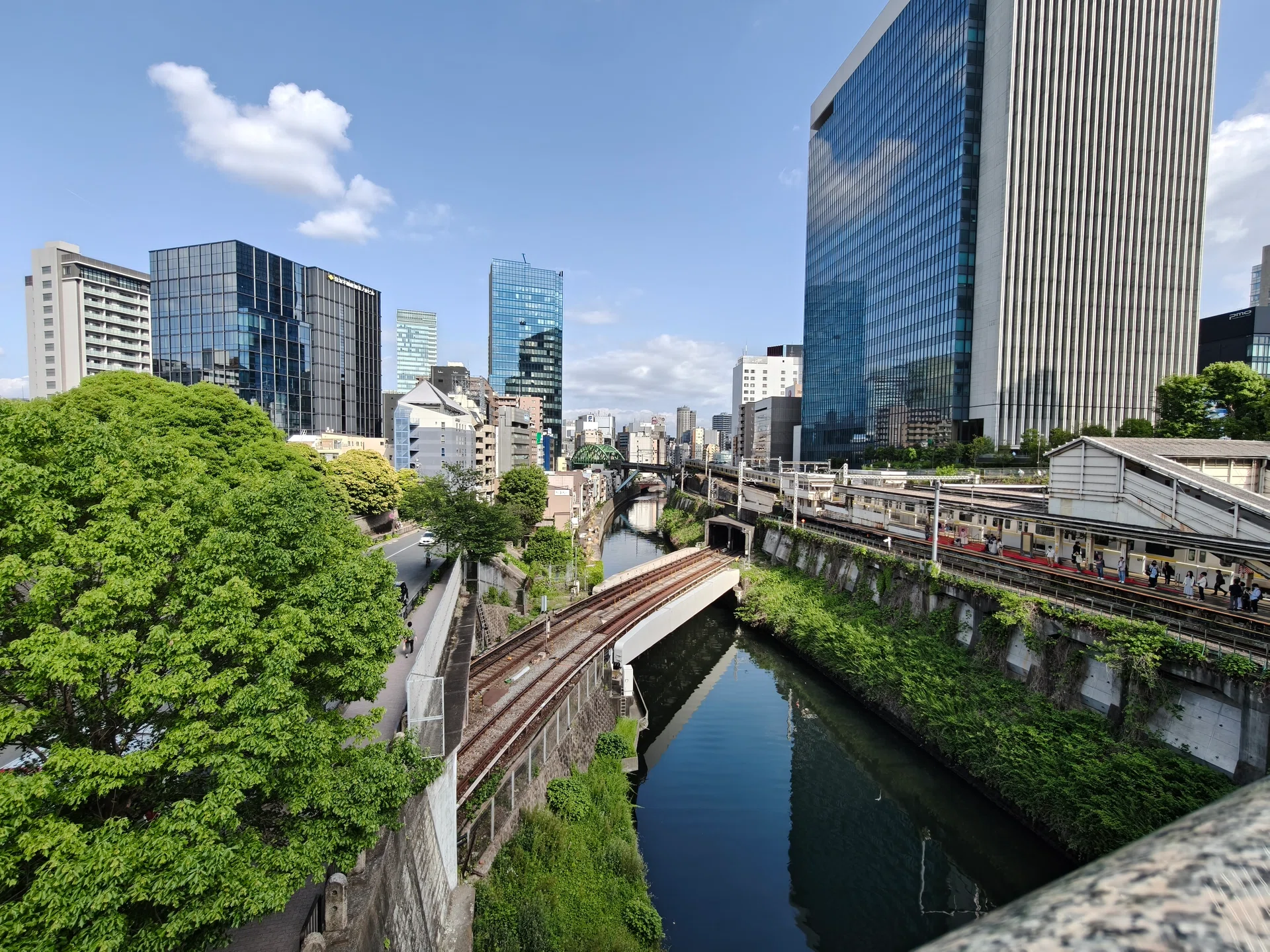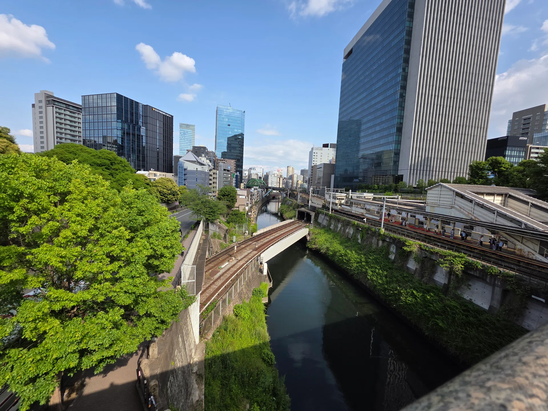 For this category, we opted featuring the Hijiri-bashi bridge in Tokyo, where three different train tracks intersect at different heights. From this photo, we can see how the smartphones handle elements such as foliage, water details, urban structures, commuters, and the high-rise buildings in the background.