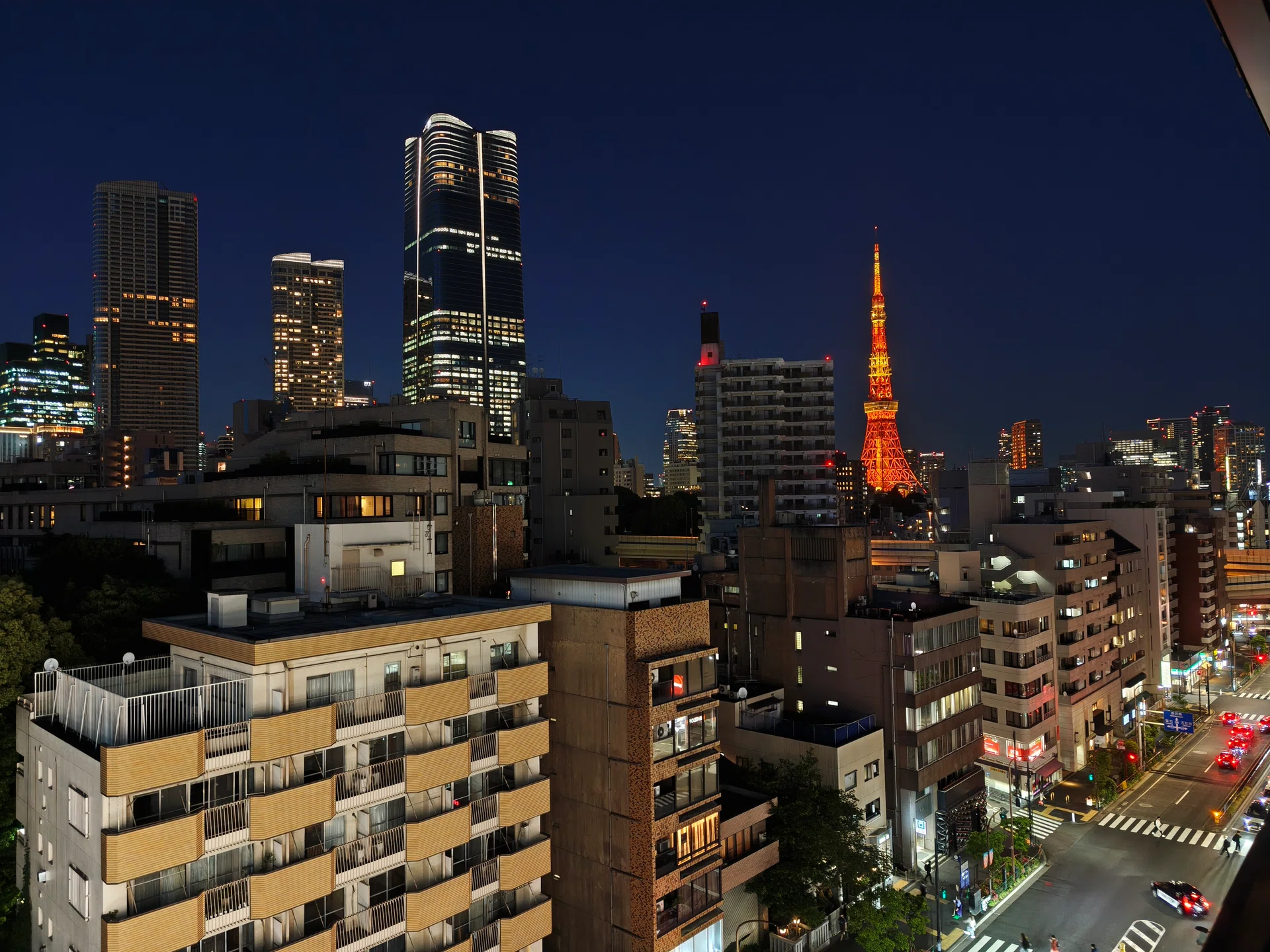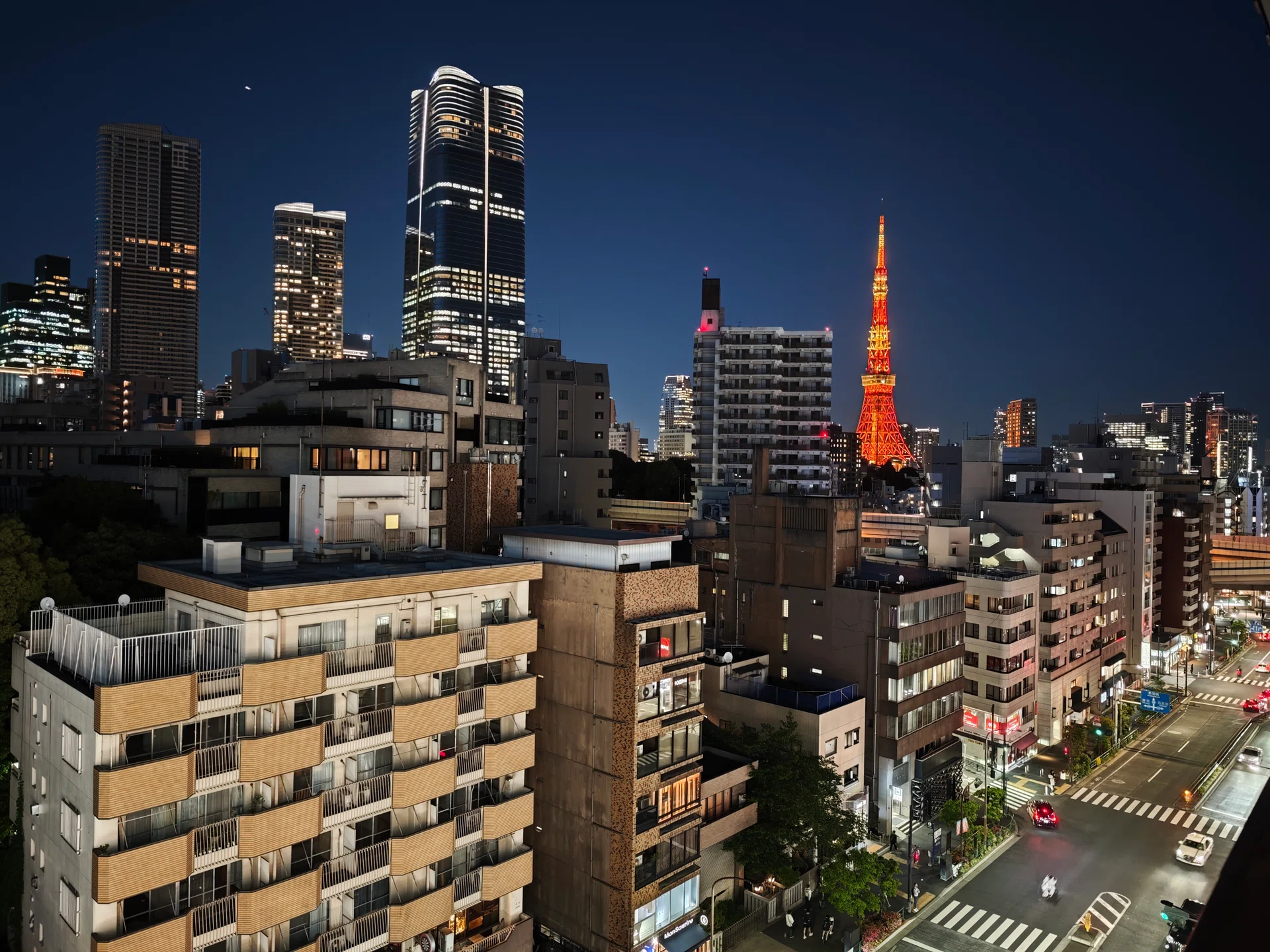The colours are accurate, with the Tokyo Tower appearing accurately orange. If you zoom in and look down to the street, you can see the distinct FamilyMart colours (green, white and blue) in the illuminated sign and around the building.