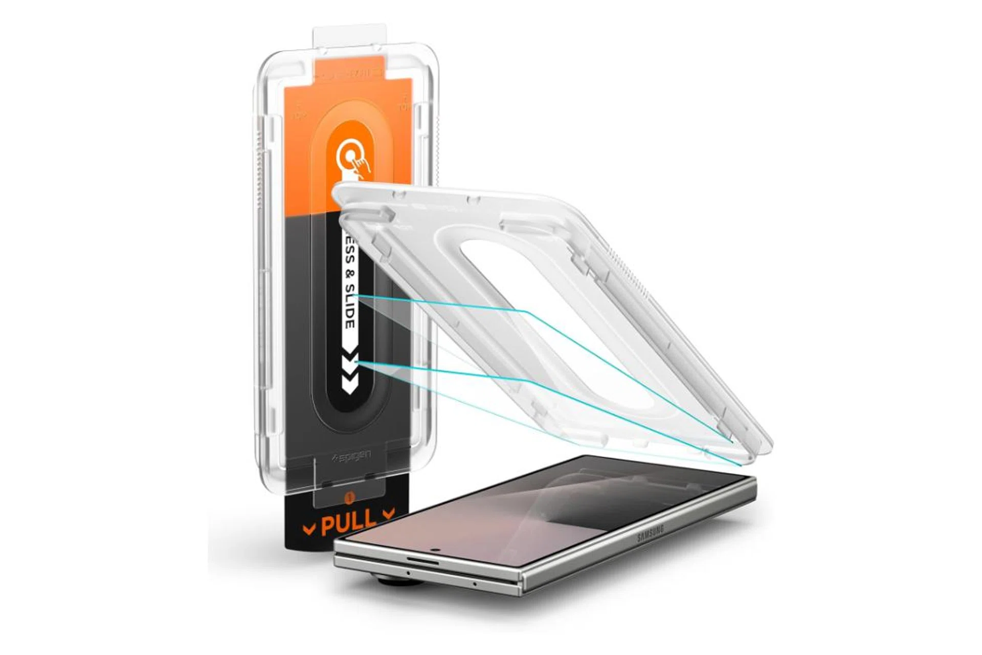 Spigen Screen Protector for the Galaxy Z Fold7 Tempered Glass EZ Fit Pro includes two screen protectors, a cleaning kit, release film for automatic dust removal, and an EZ Fit tray included for precise and easy installation. Made from 9H tempered glass for durability with oleophobic coating for fingerprint resistance.
