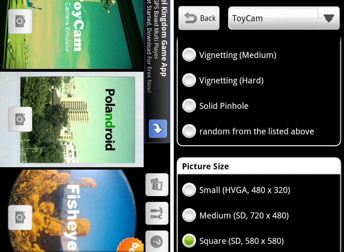This simple-to-use camera app adds variety to the usually drab pictures with a choice selection of ToyCam filters, Polaroid, Warhol and Fisheye effects. Once you are done, you can easily share these photos through social media channels like Whatsapp, TweetDeck and Facebook. Simply select your favorite filter through the main menu and click the camera icon to work its magic. Basic options for tweaking includecustomizing your picture size as well, from Large (960 x 640) to Square (580 x 580). | |