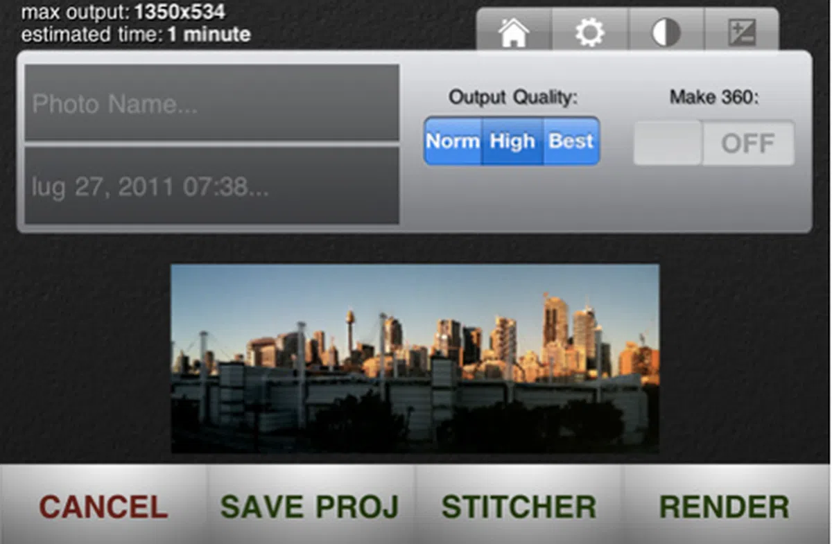 Panoramatic 360 is a powerful app with the most options for output, with the ability to tweak settings like brightness, contrast, and compression quality. It even comes with auto exposure correction, which tries to normalize the difference in exposure levels between different shots. The final images aren’t always perfect, you might still see differences in exposure and white balance across the final panorama, but it does help to get more seamless panoramas. | |