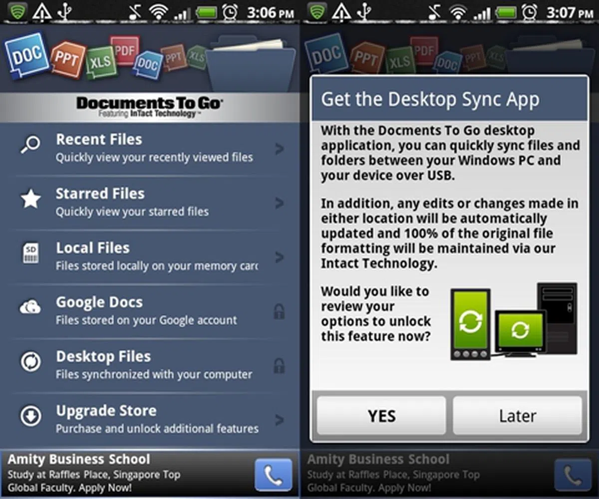 Frequent users of Office files will like Documents to Go Main App. The free version of Documents To Go allows you to view native Word, Excel and PowerPoint files. It has garnered over one million downloads worldwide. If you want to edit these files on the go, you can purchase the full version key at S$18.34. | |