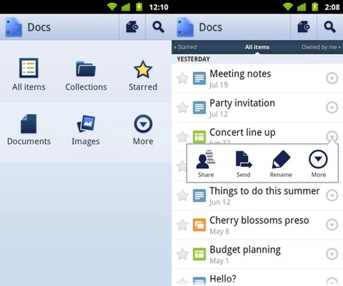 If you are an Android user, you will benefit from a dedicated Google Docs app. The app seamlessly integrates your online files to your Android smartphone. A recent update enables you to take pictures with your phone and attach them to a Google document using the new Web Clipboard feature. | |
