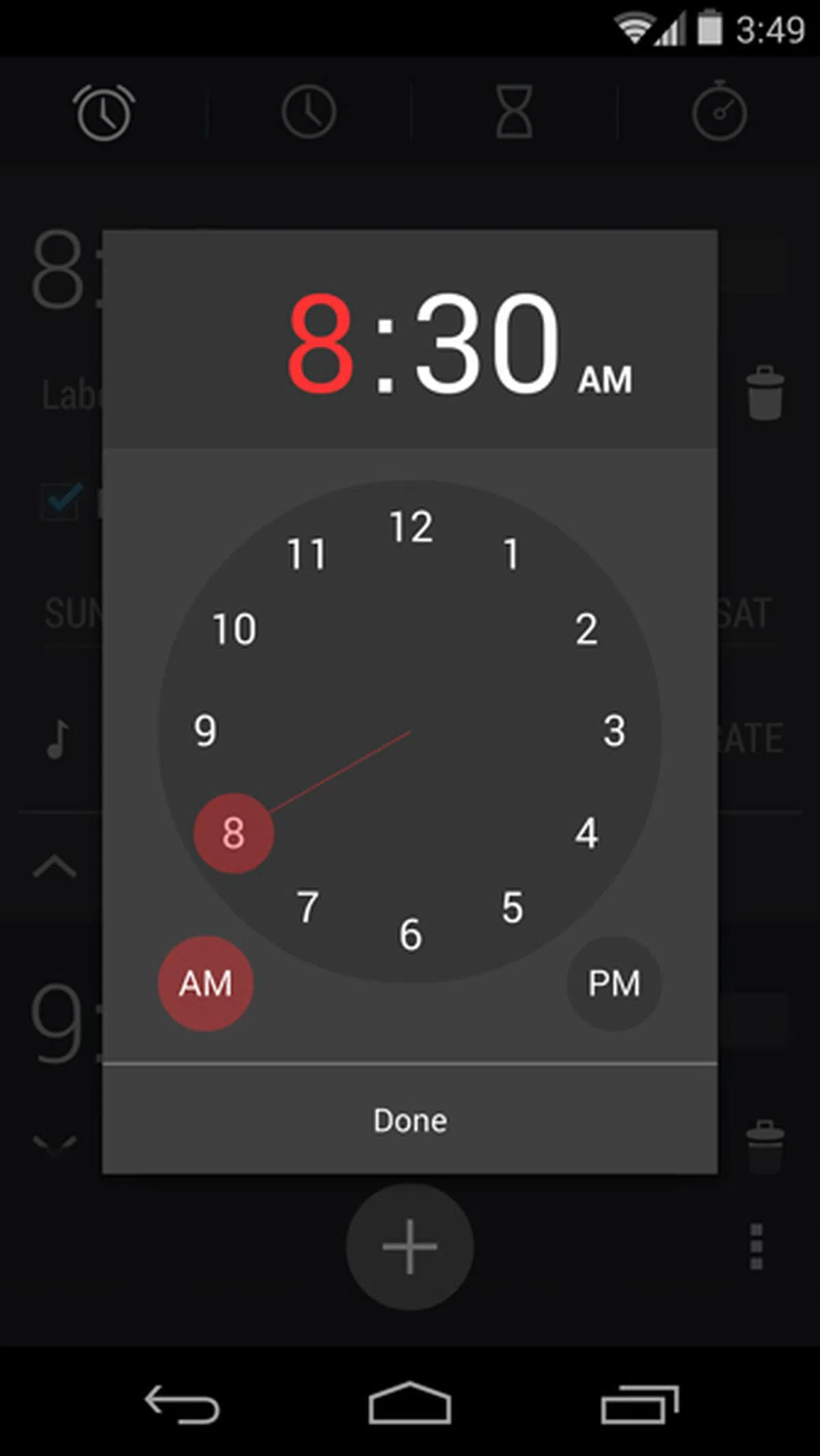Google’s Roboto font has also been slightly tweaked into a lighter, thinner “Condensed Roboto” form and there also are new animations when opening up the app drawer and flipping back to the homescreen. A few default apps have also been given a clean redesign too. For example, the old clunky alarms app has been replaced with a slick radial-style clock with a stylish red time picker. |