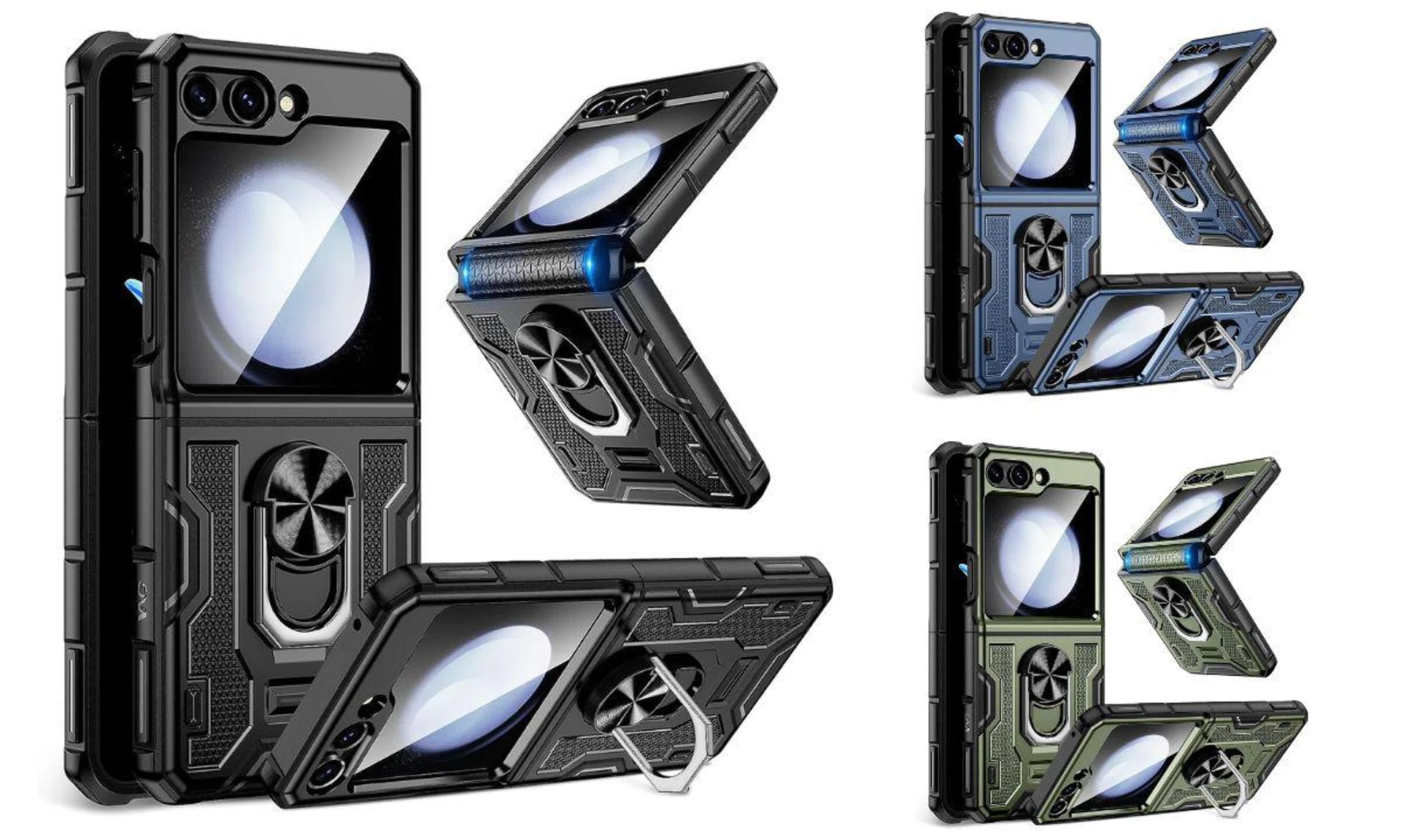 Caka Z Flip 5 Case with Hinge Protection and Ring Stand