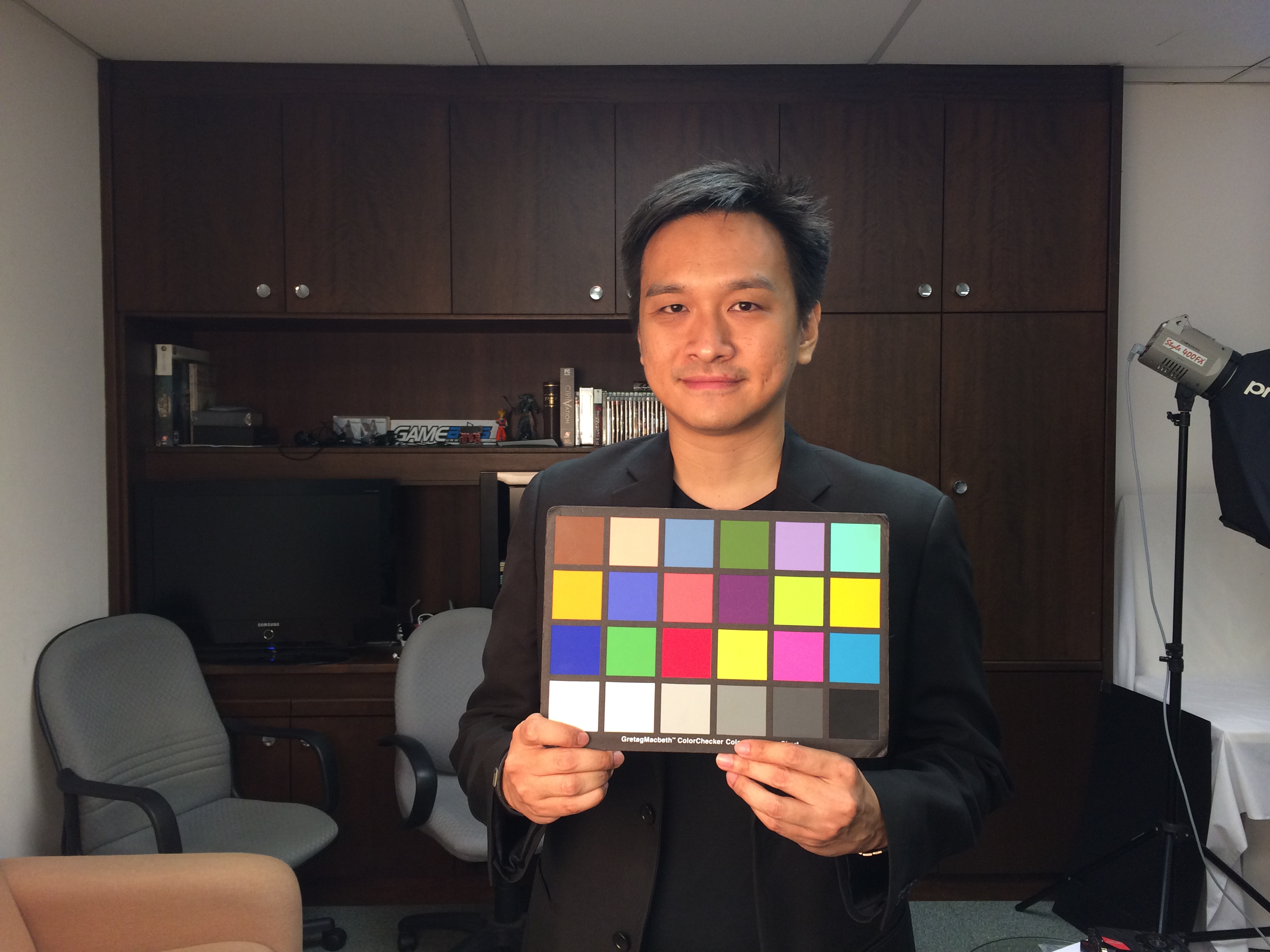 The iPhone 5S manages to retain the warm glow on my face while managing to render the white spot on my color chart white, as well as keep the room’s interior lights white behind me. The finished effect actually looks quite pleasing.
