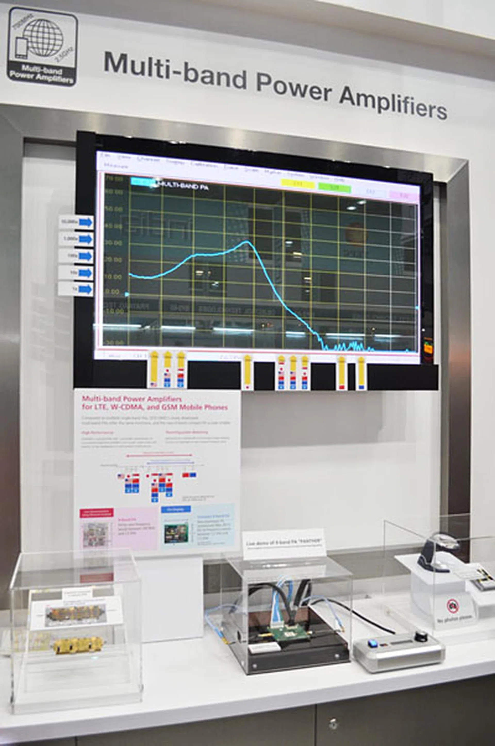 This year's booth focuses on a commercial NFC (Near Field Communication) roaming service, the DriveNet service which promises to make your mobile phone as good as a GPS unit, AR (Augmented Reality), and a prototype multi-band power amplifier.