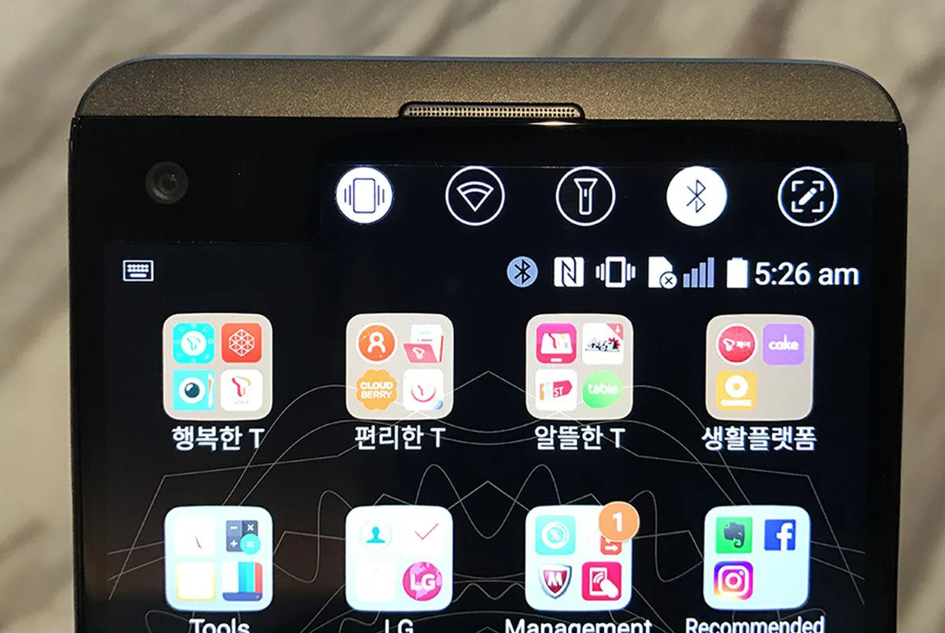 Like the V10, the V20 has a small secondary screen above the main display. The display has been improved with double the brightness and 50 percent larger font size compared to the V10. The secondary display can show notifications and alerts, as well as quick launch shortcuts. A new Expandable Notifications feature lets you tap a button on the Second Screen to enlarge notifications so you can read long messages at a glance and quickly send a reply or share information.