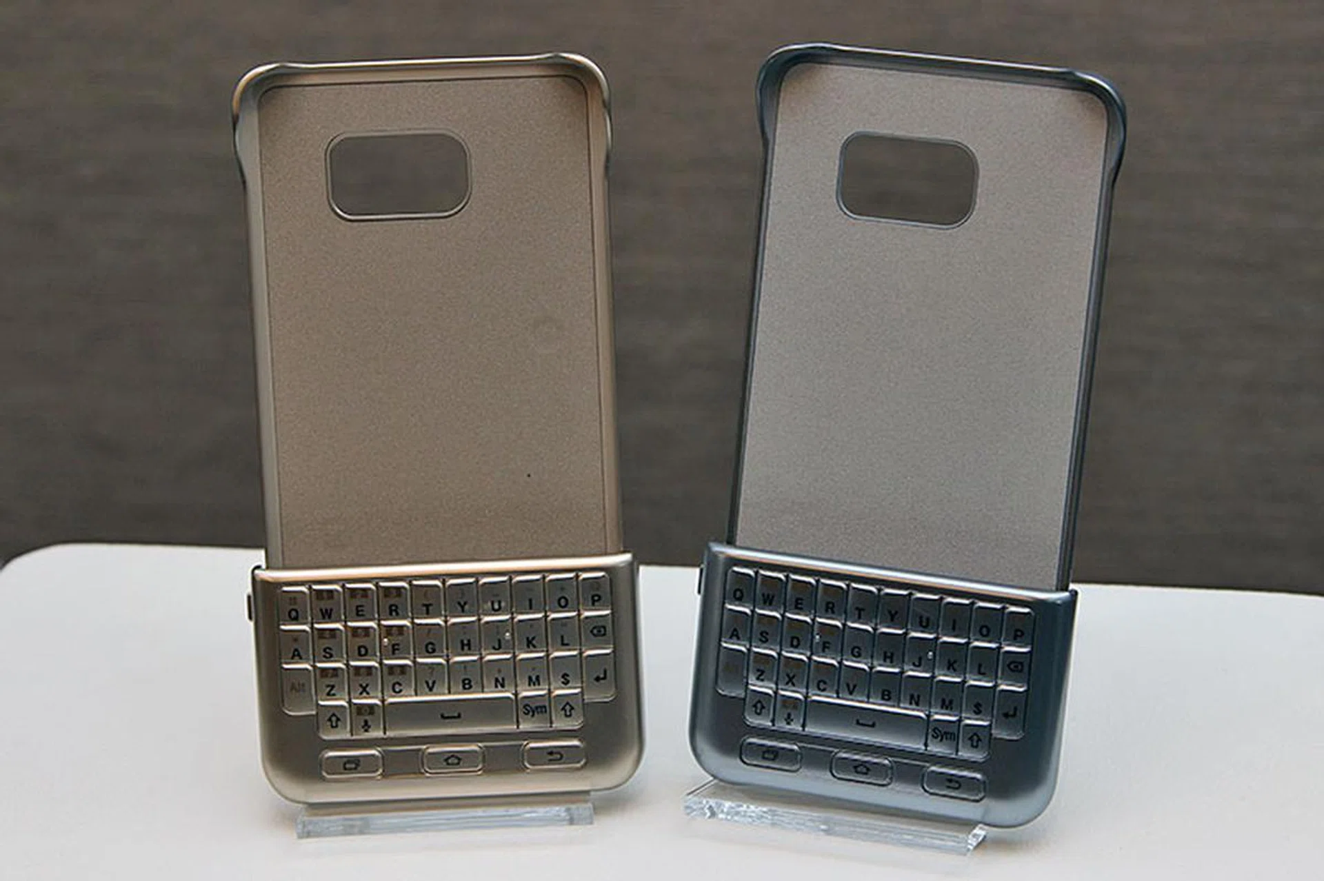For those looking to dress up their S6 Edge+ (or Note 5), Samsung is offering a slew of cases and covers, not unlike those we’ve seen for the smaller S6 models. There's even a power bank made to look like an Edge device, with sloping sides and all. The new QWERTY keyboard cover leaked before today was the most interesting of the bunch, and it turns out to be a real product. In short, this is a 2-piece front keyboard/rear case accessory that Samsung is selling for the S6 Edge+ and Note 5. The implementation is pretty clever too. The phone knows when it’s attached and will adjust the UI accordingly; and no battery is needed as the screen can sense when the pressed buttons are touching it, just like how our fingers and a capacitive stylus work.