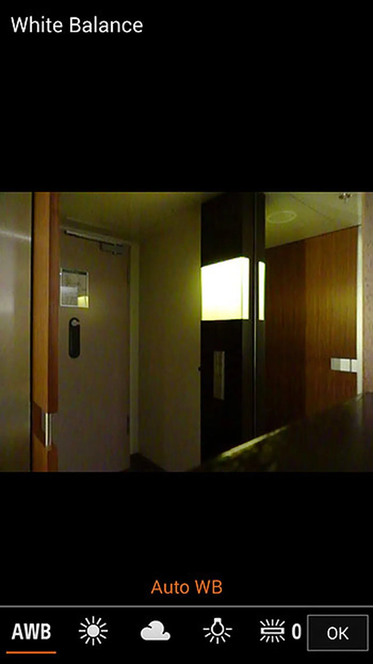 Pressing the icon on the top left brings up a popup menu where you can choose other photo shooting modes. By default, it’s set to Intelligent Auto, but there are also Superior Auto, and Program Auto. Superior Auto raises the ISO limit from 3,200 to 12,800, and while Program Auto caps this back to ISO 1,600, it gives you additional adjustments for EV (–2 to +2), and white balance (seven of them, including auto white balance).