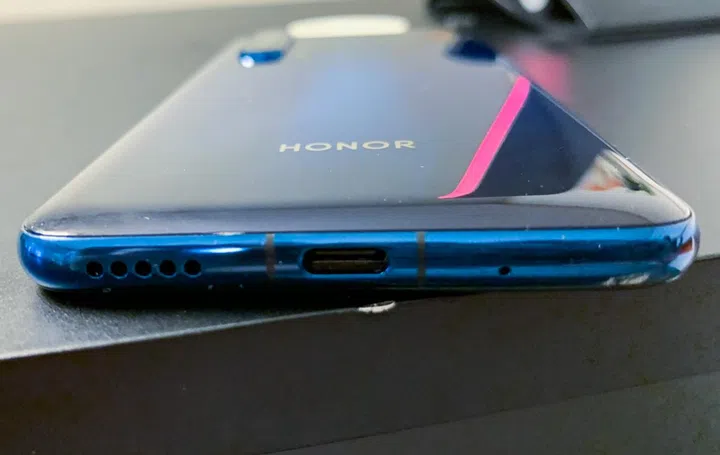 Behold the Honor 20 Pro! This is their flagship for the 20 series, and like the 20 Lite, it comes with a brand new rear surface design. Honor calls this "Dynamic Holographic Design" and it's a very reflective surface that has subtle changes in color depending how the light hits it.