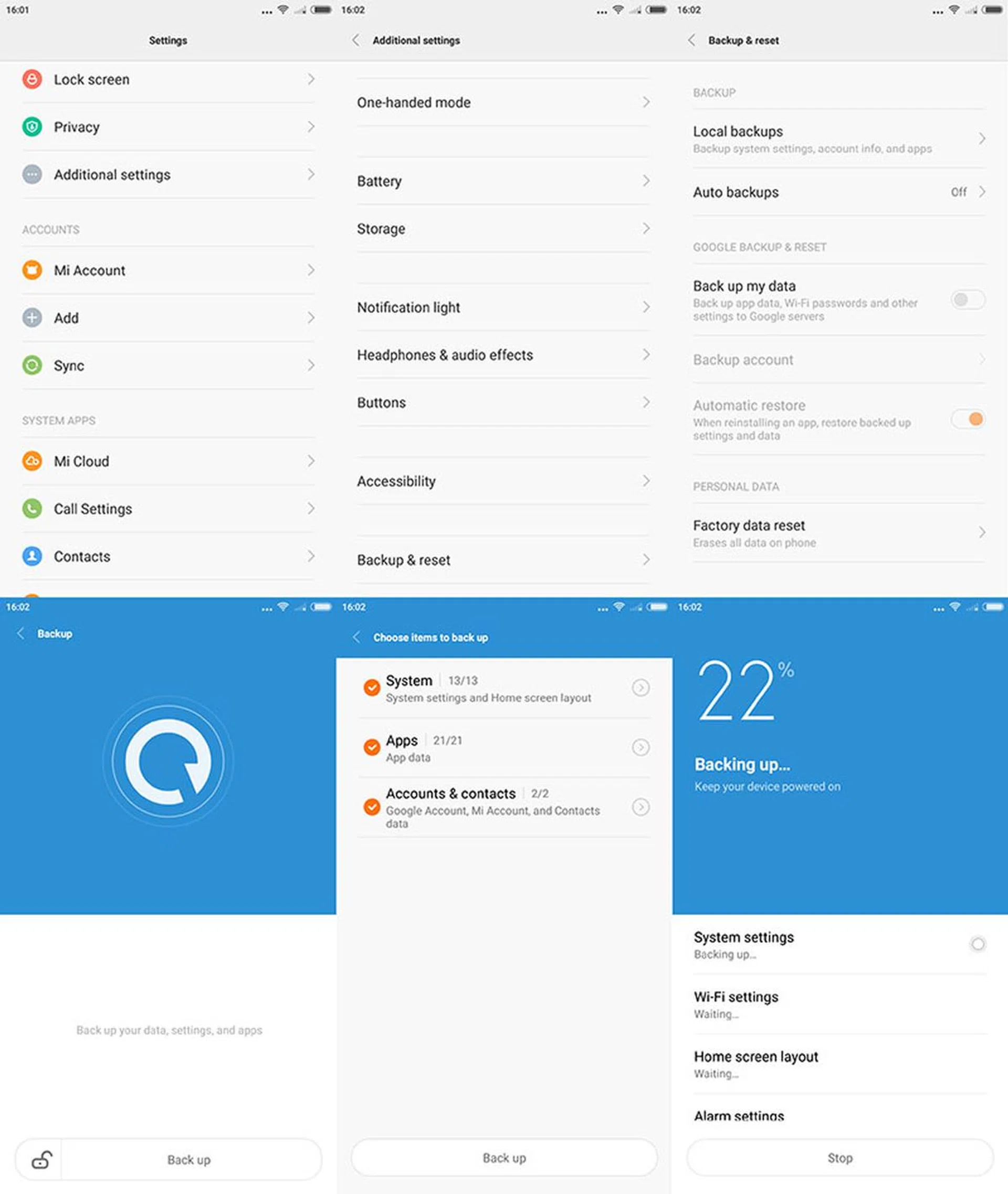 Without going into third-party apps, there are three built-in ways to backup on a Xiaomi phone running MIUI 6.
