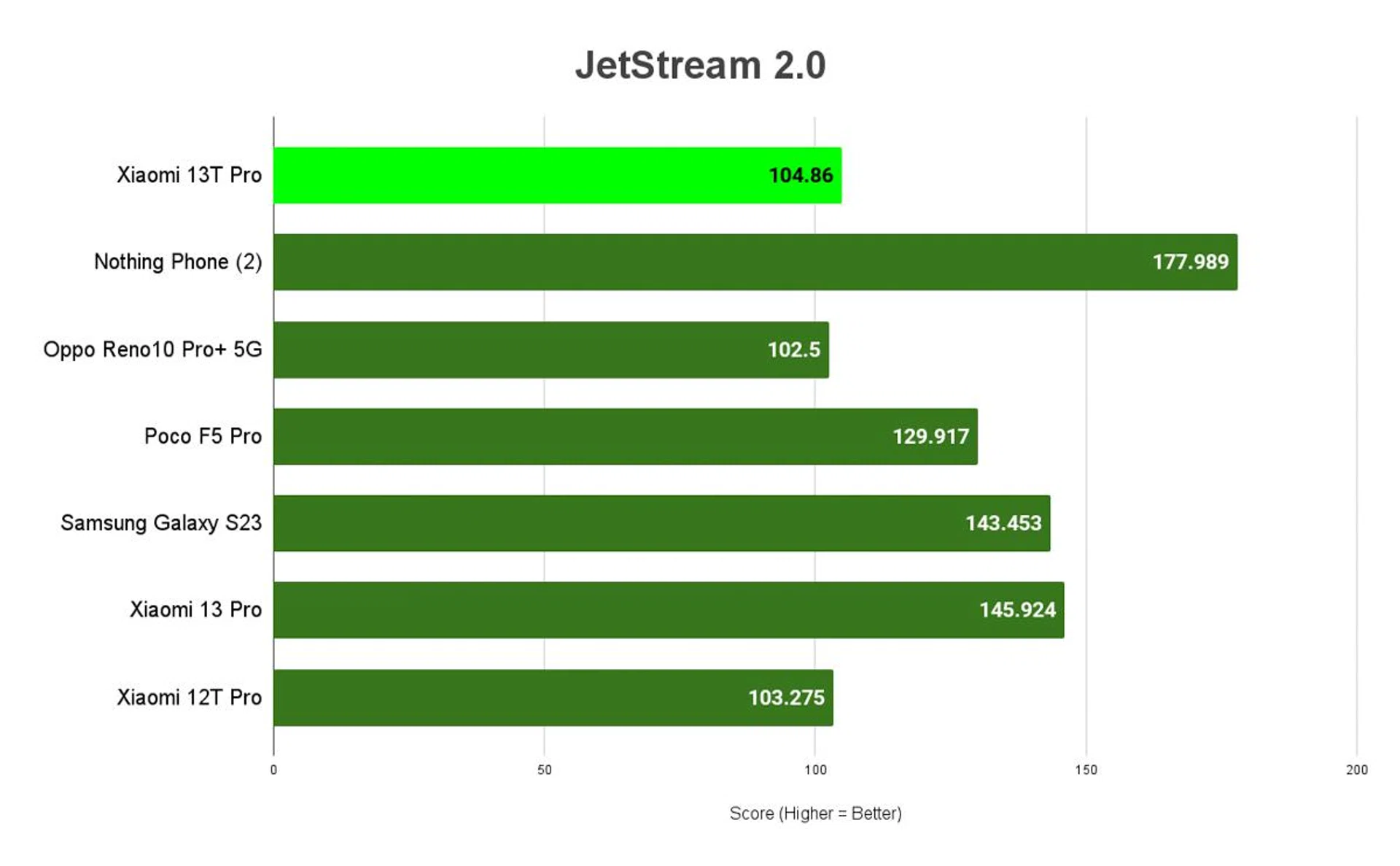 JetStream 2 is a combination of a variety of JavaScript and Web Assembly benchmarks, including benchmarks that came before like SunSpider and Octane. It primarily tests for a system’s and browser’s ability to deliver a good web experience. It runs a total of 64 subtests, each weighted equally, with multiple iterations, and takes the geometric mean to compute the overall score. The higher the score, the better.