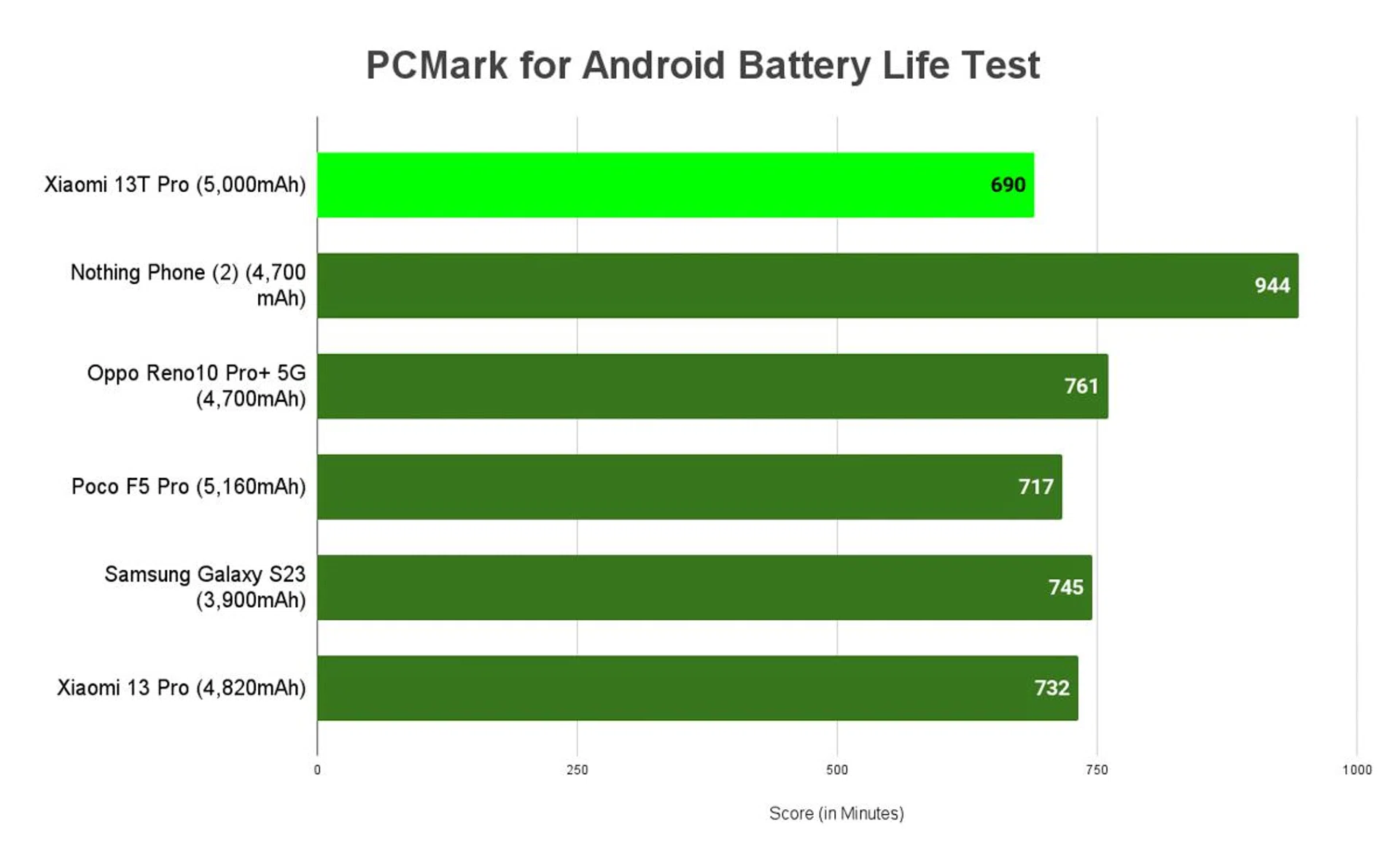 Our new battery benchmark uses PCMark for Android’s Work 3.0 Battery Life test to determine a modern Android-based smartphone's battery uptime in minutes. This controlled benchmark simulates real-world usage with a combination of both web and social media browsing, video and photo editing, parsing data with various file formats, writing (on documents), and more.