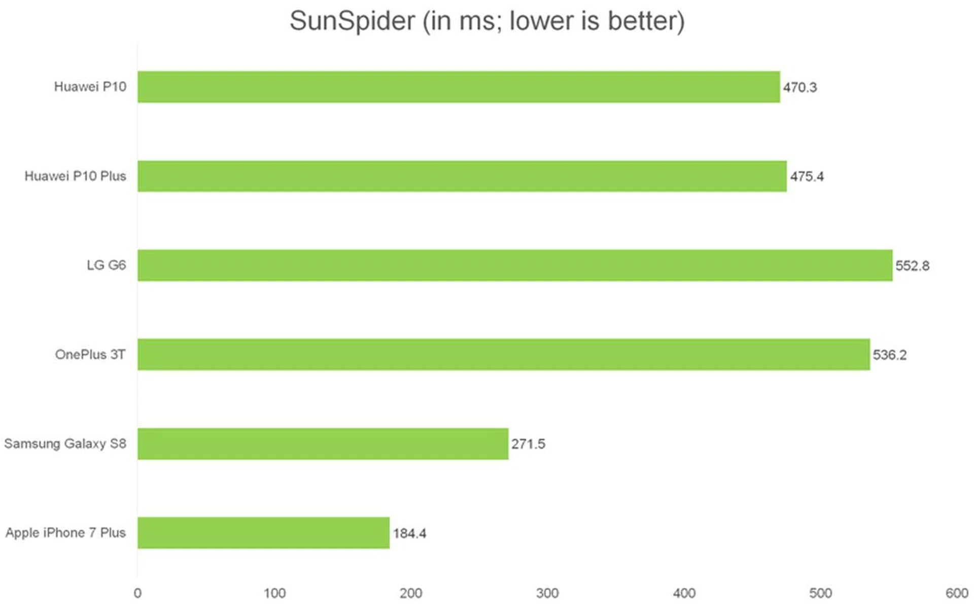 SunSpider JavaScript measures the browsing performance of a device when processing JavaScript. It not only takes into consideration the underlying hardware performance, but also assesses how optimized a particular platform is at delivering a high-speed web browsing experience.