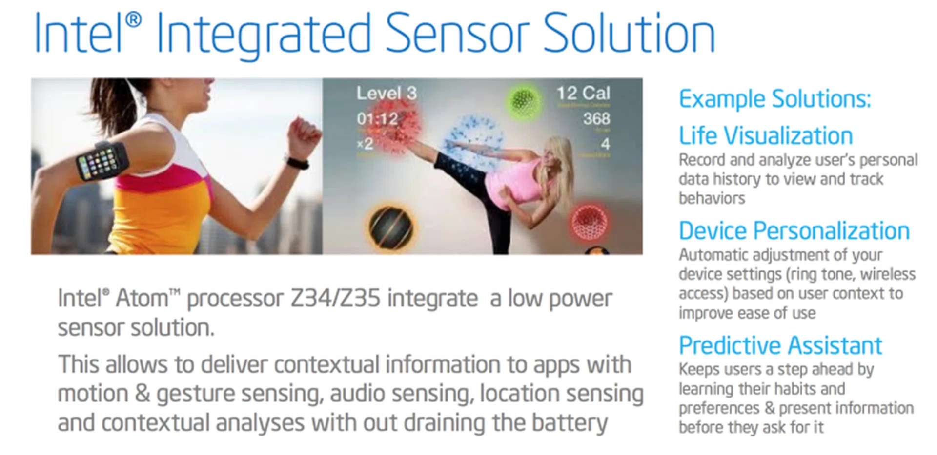 Intel President Renee James said, "We have made significant advancements in our mobile computing" and also stated that "2014 will be a better year for Intel's smartphone business". Intel is basing those hopes on its two new 64-bit Atom processors, both of which are based on Intel's 22nm Silvermont microarchitecture. Following up on the Intel Bay Trail-T SoC chips showcased during Computex 2013 for the Tablet products that utilized the Silvermont architecture, the first to be release is Merrifield (a dual-core processor clocked at up to 2.13GHz) that's targeted at smartphones. Intel stated that Merrifield is the first chip to feature Intel's new "Integrated Sensor Solution" that managers sensor data even when the device is in a low power state.
