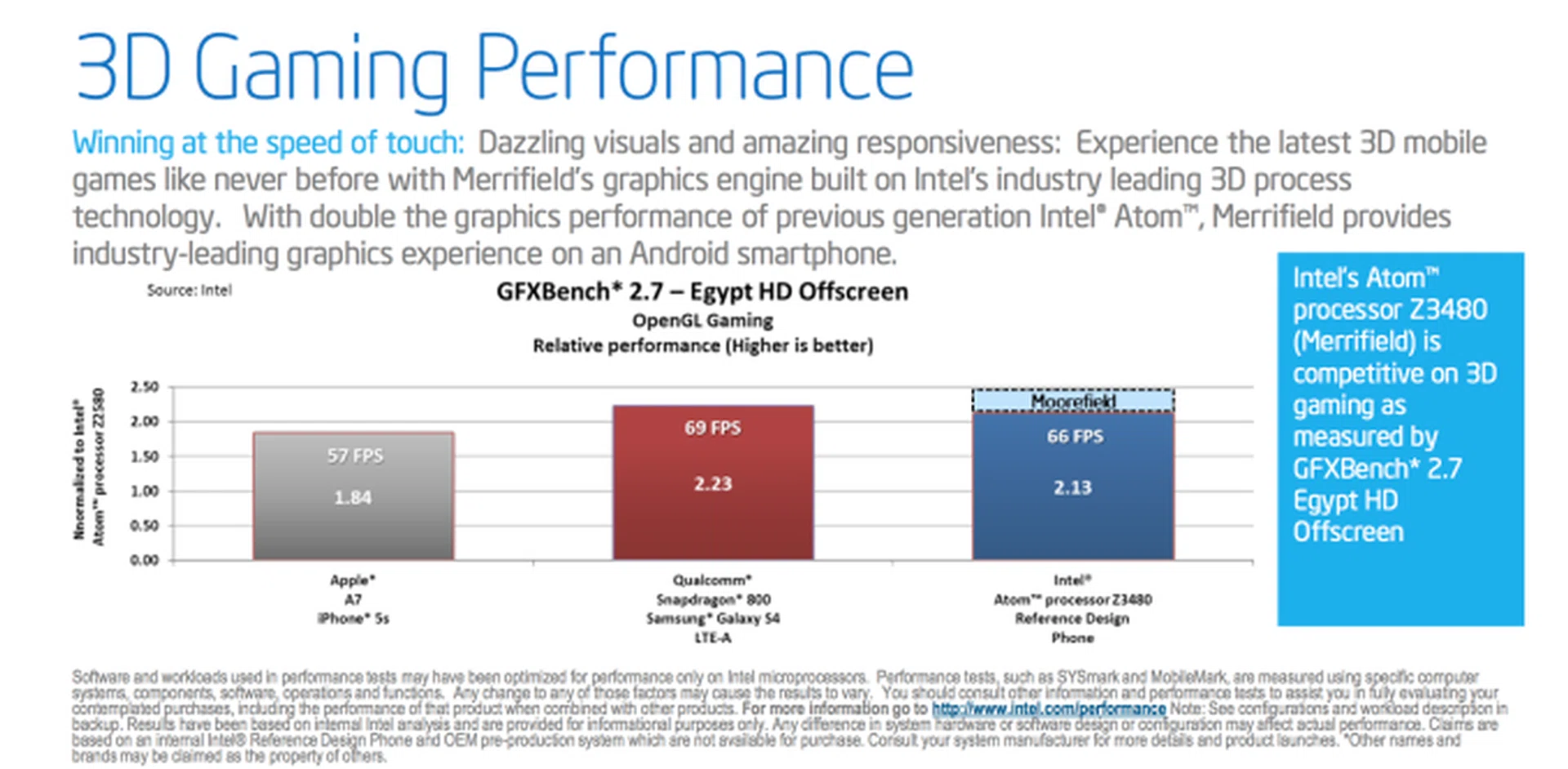 Graphics performance on GFXBench 2.7 was also better than Qualcomm and Apple, with Moorefield promising even better graphics performance.