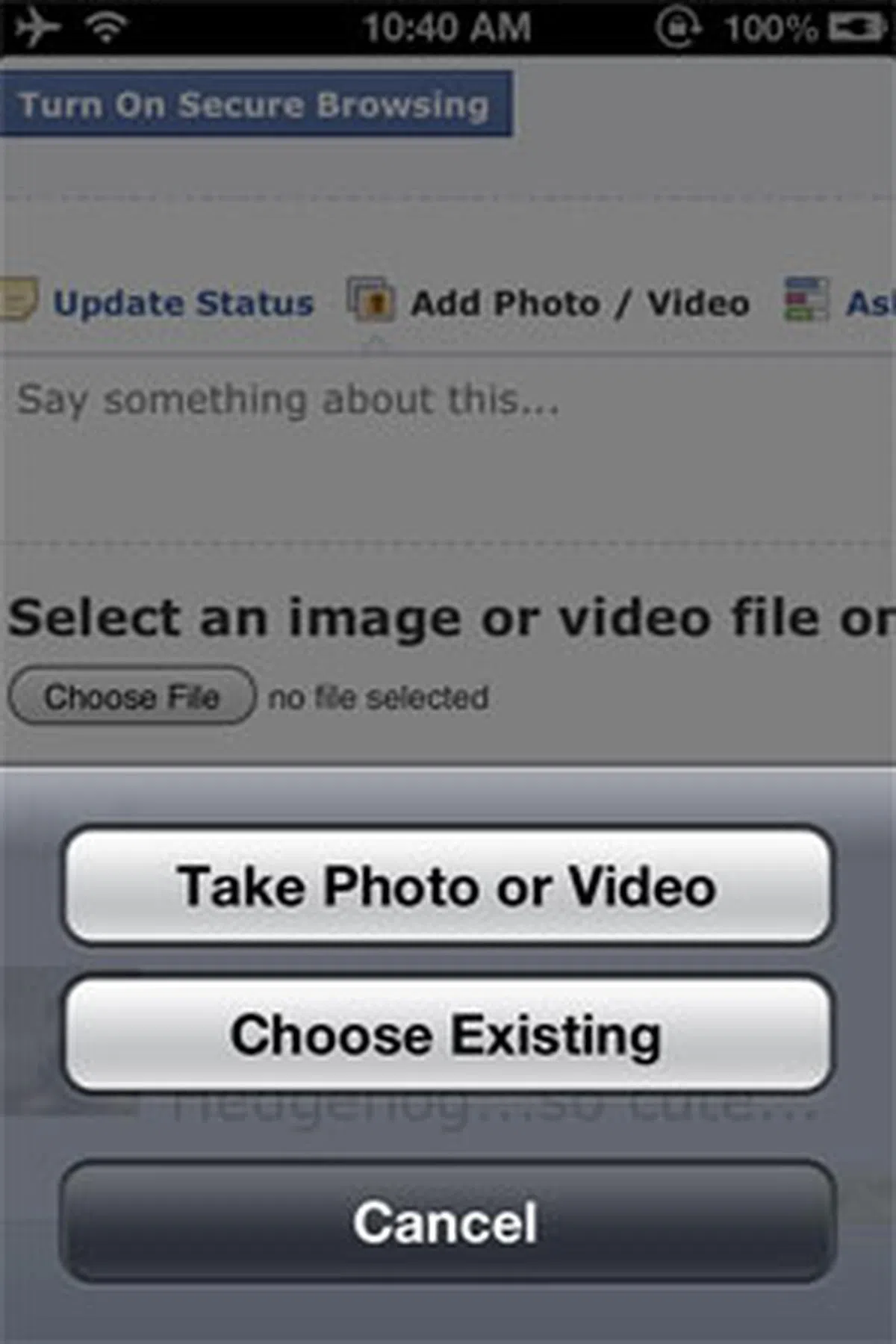 In iOS 6, Safari supports common HTML input elements. This means that you're now able to upload photos and videos right within the browser, in addition to taking a new photo or video. This is especially useful if you use a service that doesn't have an app yet. Even for a service that has a native iOS app that supports media uploads (for example: eBay, Facebook, WordPress), some users might still prefer to use the service's web interface.