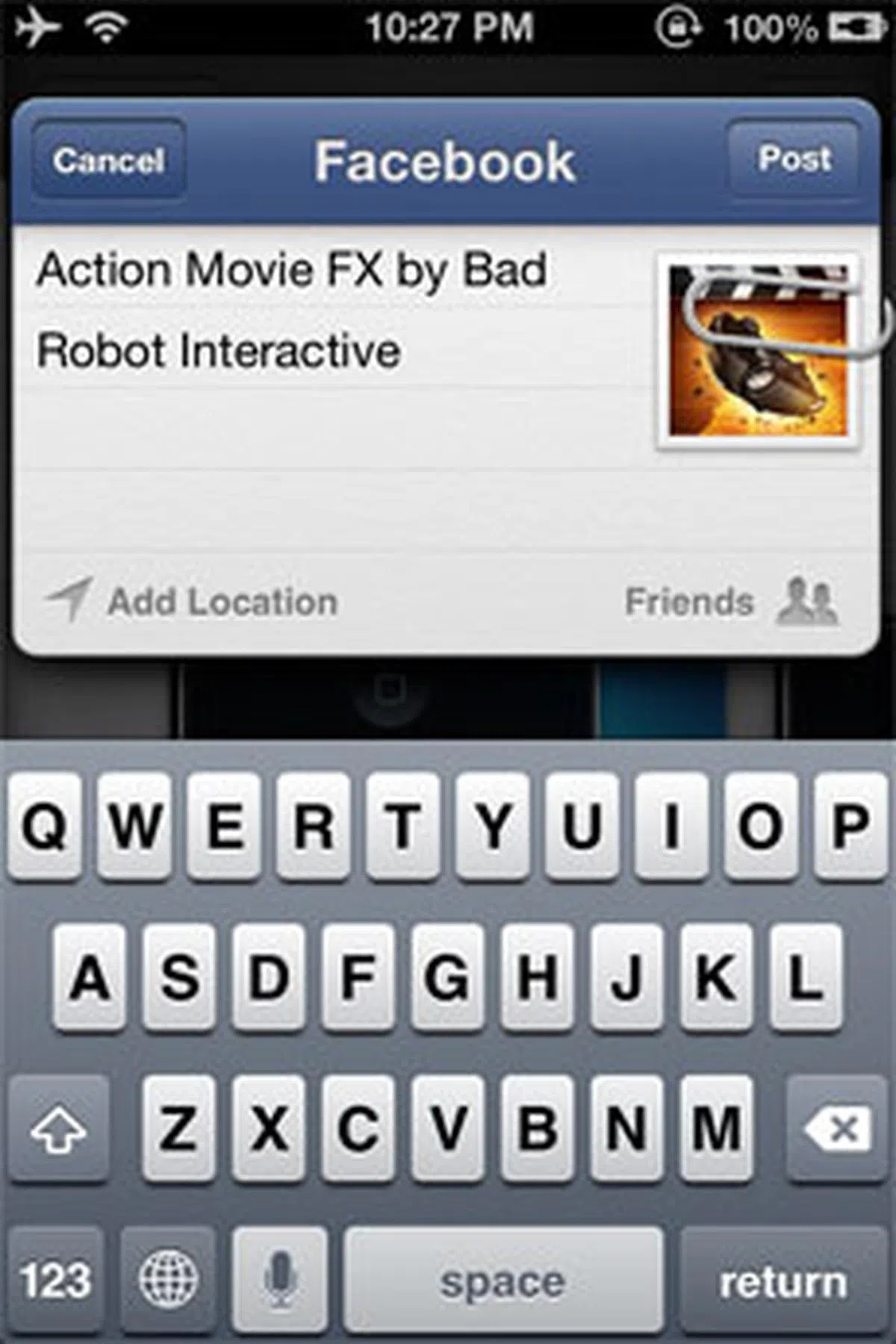 Besides sharing from core native apps like photos from Camera or Photos, websites from Safari, and locations from Maps, you can now talk about your favorite app from the App Store, movies and TV shows from the iTunes Store, and even 'talk smack' on Game Center. Game Center now allows you to add friends via your Facebook account. Posting to Facebook (and Twitter) can also be done quickly from the Notification Center - there's now a 'Tap to Post' ('Tap to Tweet' for Twitter) button. You enter your location, as well as select the audience.