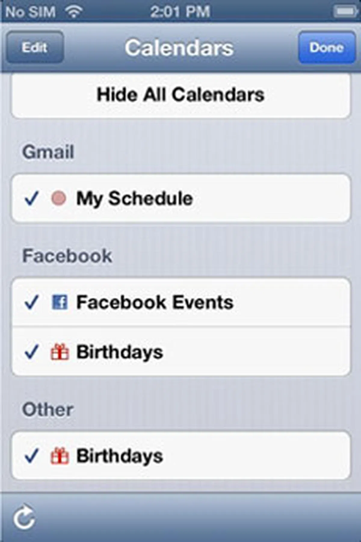 Next, you can tap on 'Update Contacts' to update your contacts with your Facebook friends' user names and photos. Facebook events as well as your Facebook friends' birthdays will show up in the Calendar app. Of course, you can turn off calendar and contacts syncing anytime you want. If you've the Facebook app installed, tapping 'Settings' at the sign-in page will bring you to the settings for your chat and message alerts, HD video recording, and push notifications.