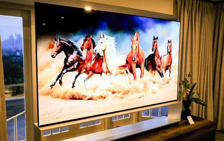 Starting off with the living room, the Signature 88Z9 is the world's first 88" OLED 8K TV, and it comes with an integrated soundbar with support for Dolby Atmos. Powered by LG's α9 Gen 2 Intelligent processor which now plays well with Google Assistant and Alexa, you can now use your TV to ask Google for the weather or to control other smart devices.