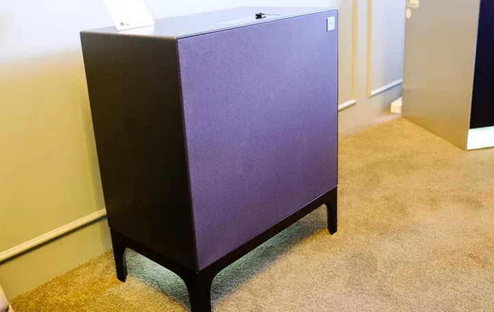 This looks like a regular cabinet, but is really a speaker in disguise. The third in the LG Objet line, the speaker plays from USB, Bluetooth, and FM to name a few. It's another product built in collaboration with Meridian Audio and is capable of 24bit/192kHz High-Res Audio playback.