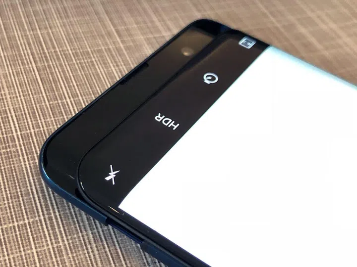 When you activate the camera app (or turn the phone on with Face Unlock enabled) the camera module will slide up out of the top of the phone. The whole process takes less than half a second. The pop-up camera is a dual lens setup pairing a 16-megapixel, f/2.0 lens with a 20-megapixel f/2.0 lens.
