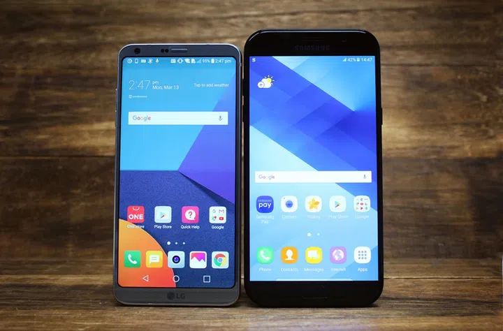 The G6 is much smaller than a traditional 5.7-inch smartphone - shown here next to Samsung's A7 (2017).