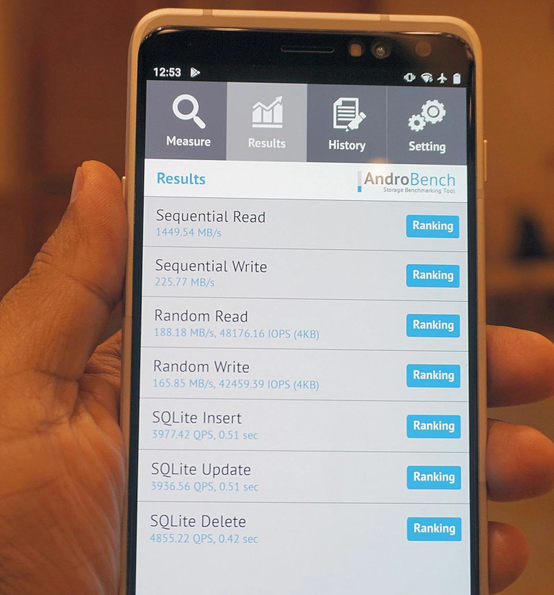 A quick look at storage-related performance with AndroBench revealed that the reference platform pretty much performs the same level as any other flagship phone out now, with the exception of faster sequential read performance that's likely enabled by better UFS storage specs.