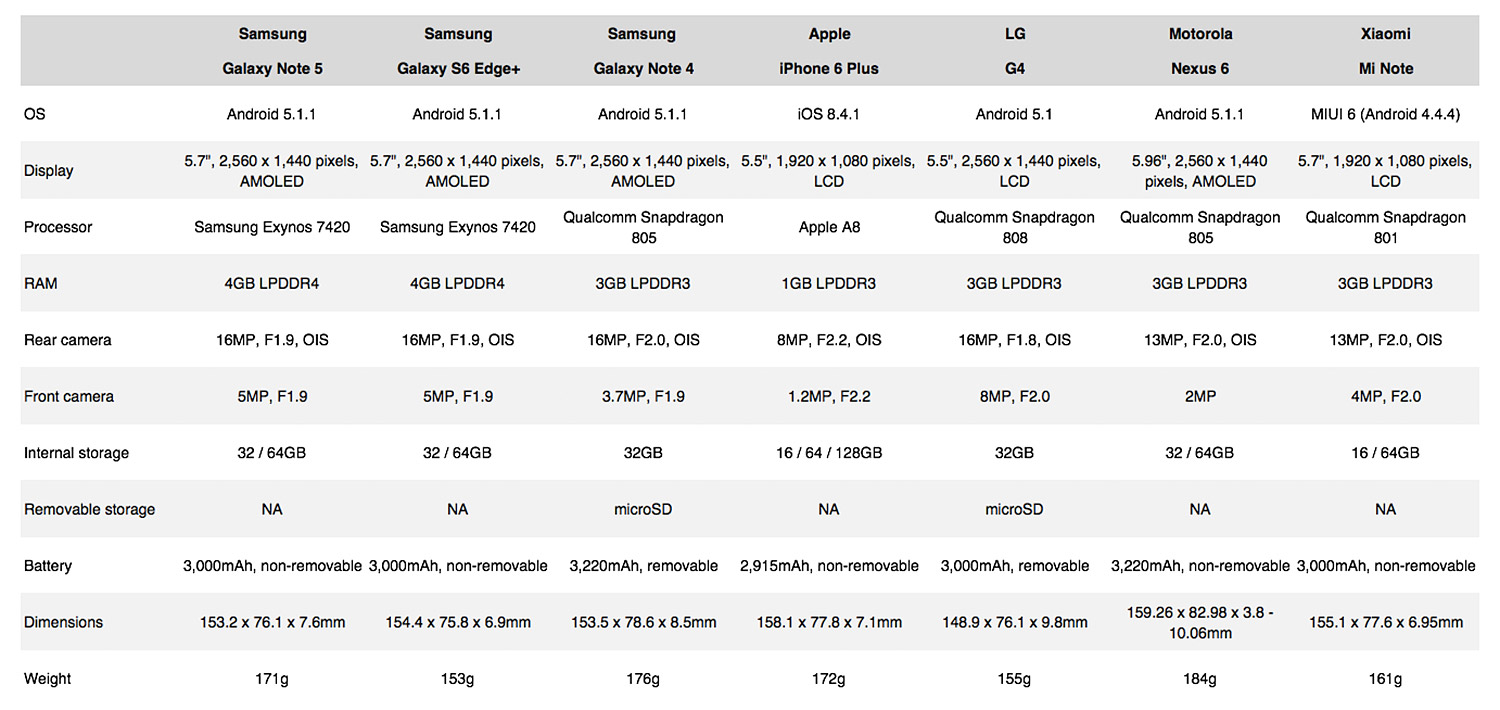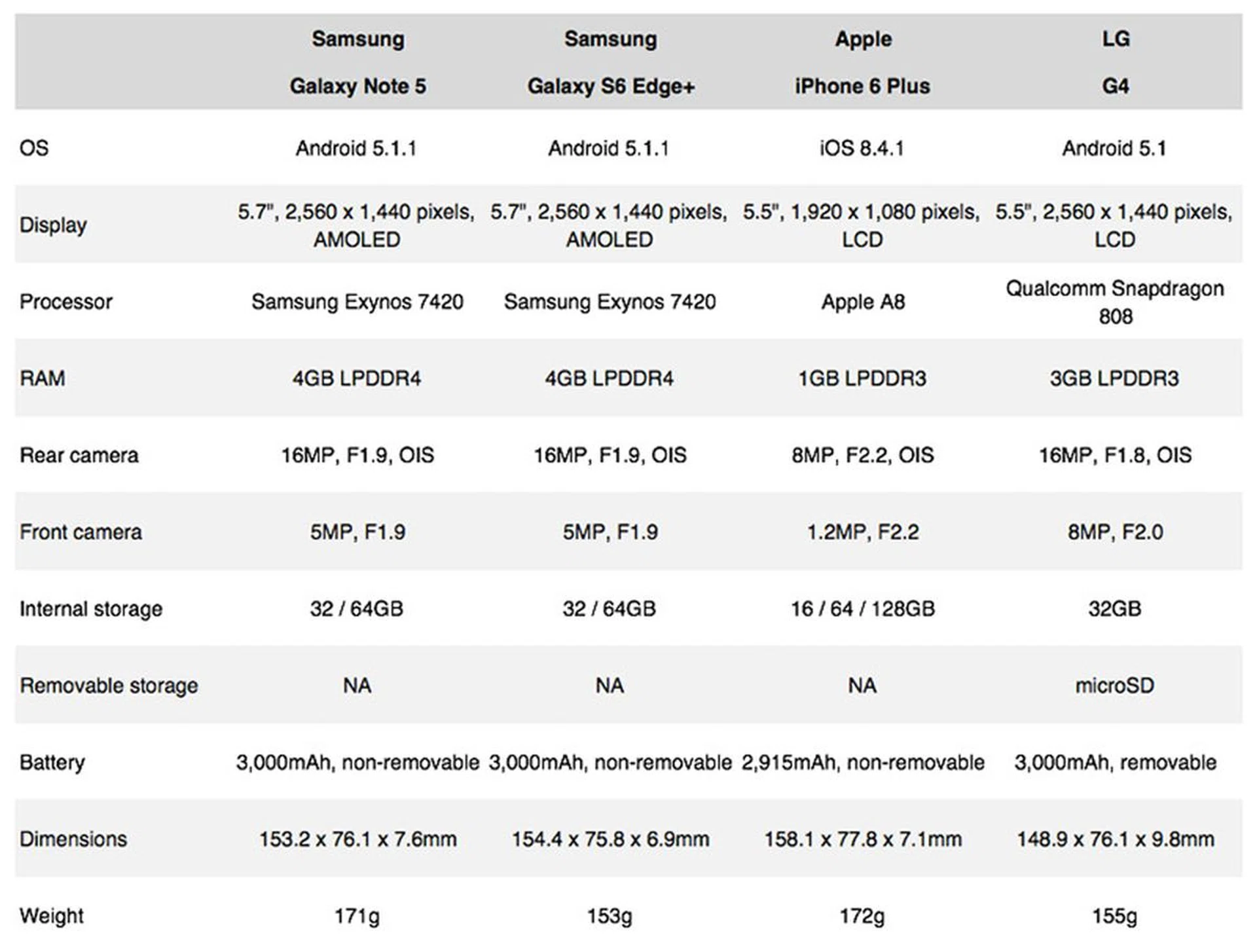 Here's a table showing the key specs of the new Samsung phablets against some of their closest competitors (click for larger image with more models):