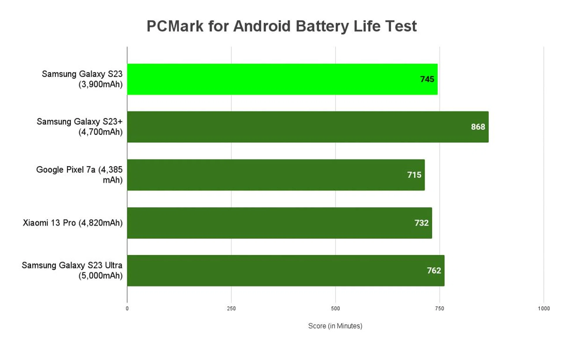 Our new battery benchmark uses PCMark for Android’s Work 3.0 Battery Life test to determine a modern Android-based smartphone's battery uptime in minutes. This controlled benchmark simulates real-world usage with a combination of both web and social media browsing, video and photo editing, parsing data with various file formats, writing (on documents), and more.