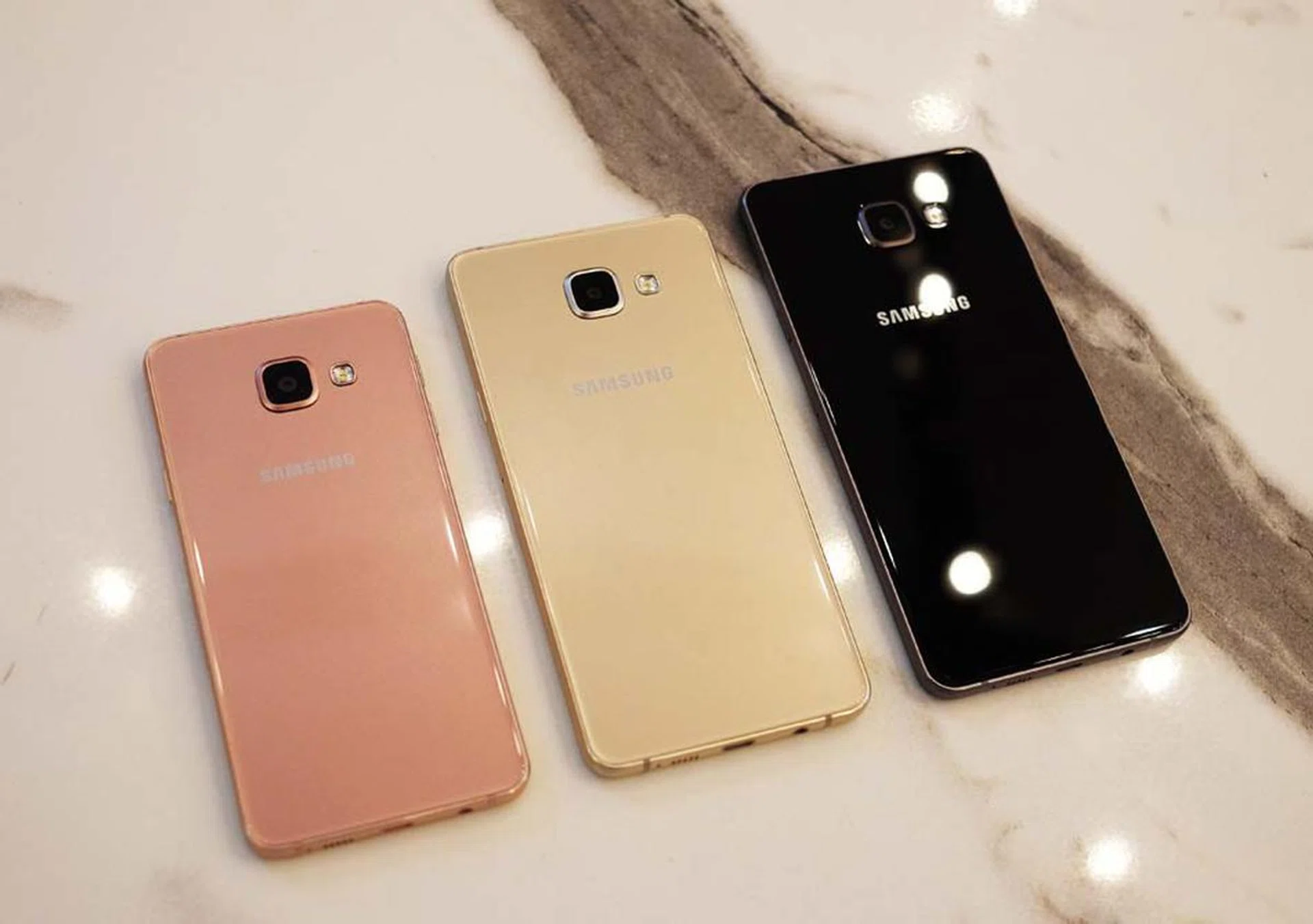 The Galaxy A3 (2016) will be available on 16th January (this Friday) for $398, while the A5 and A7 will both be launching on 30th January for $598 and $698 respectively. All three phones will be available in three colors: Black, Gold and Pink Gold.