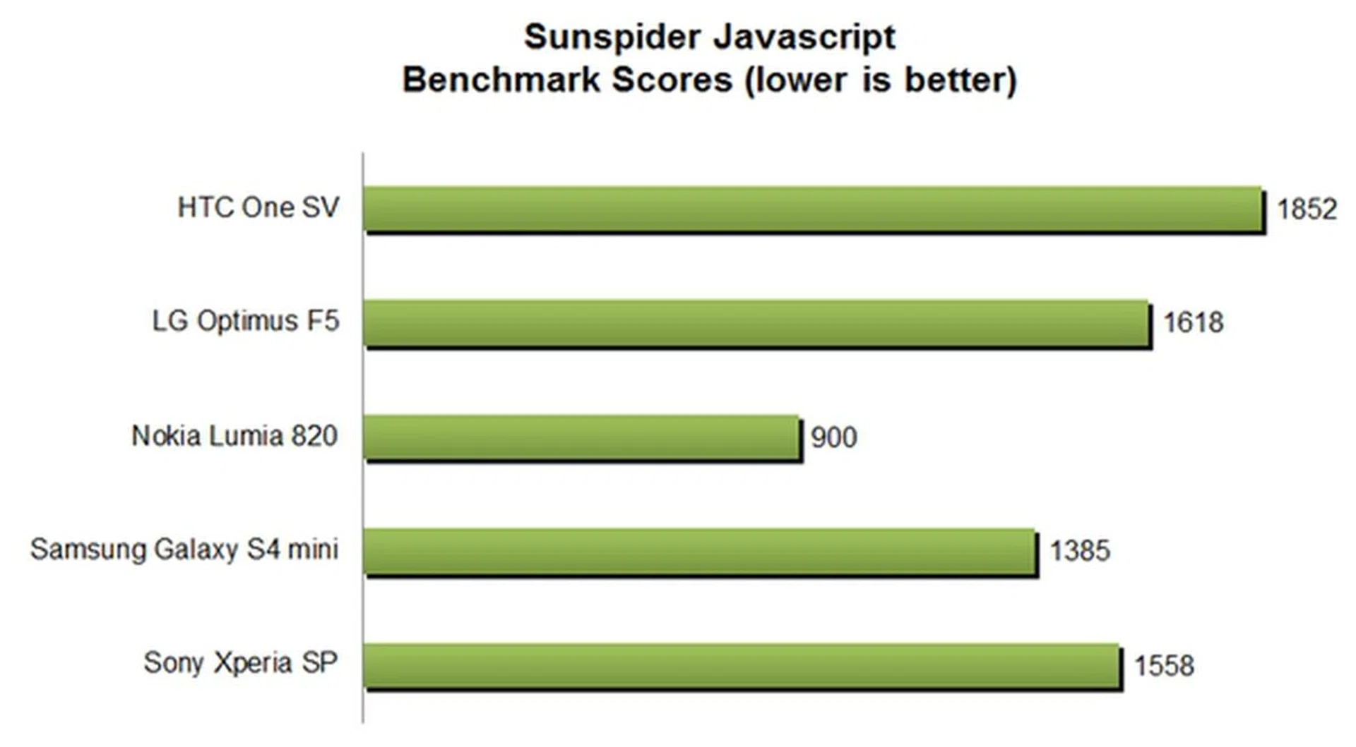 SunSpider Javascript serves as a common benchmark that measures the browsing performance of mobile devices, and is applicable for all mobile platforms. It not only takes into consideration the underlying hardware performance of a device, it also assesses how optimized a particular mobile platform is to deliver a high-speed web browsing experience on its default browser. It is important to note that for this benchmark, a lower figure indicates a better web browser performance on a mobile device as it measures the time taken in milliseconds to complete the scripted benchmark.