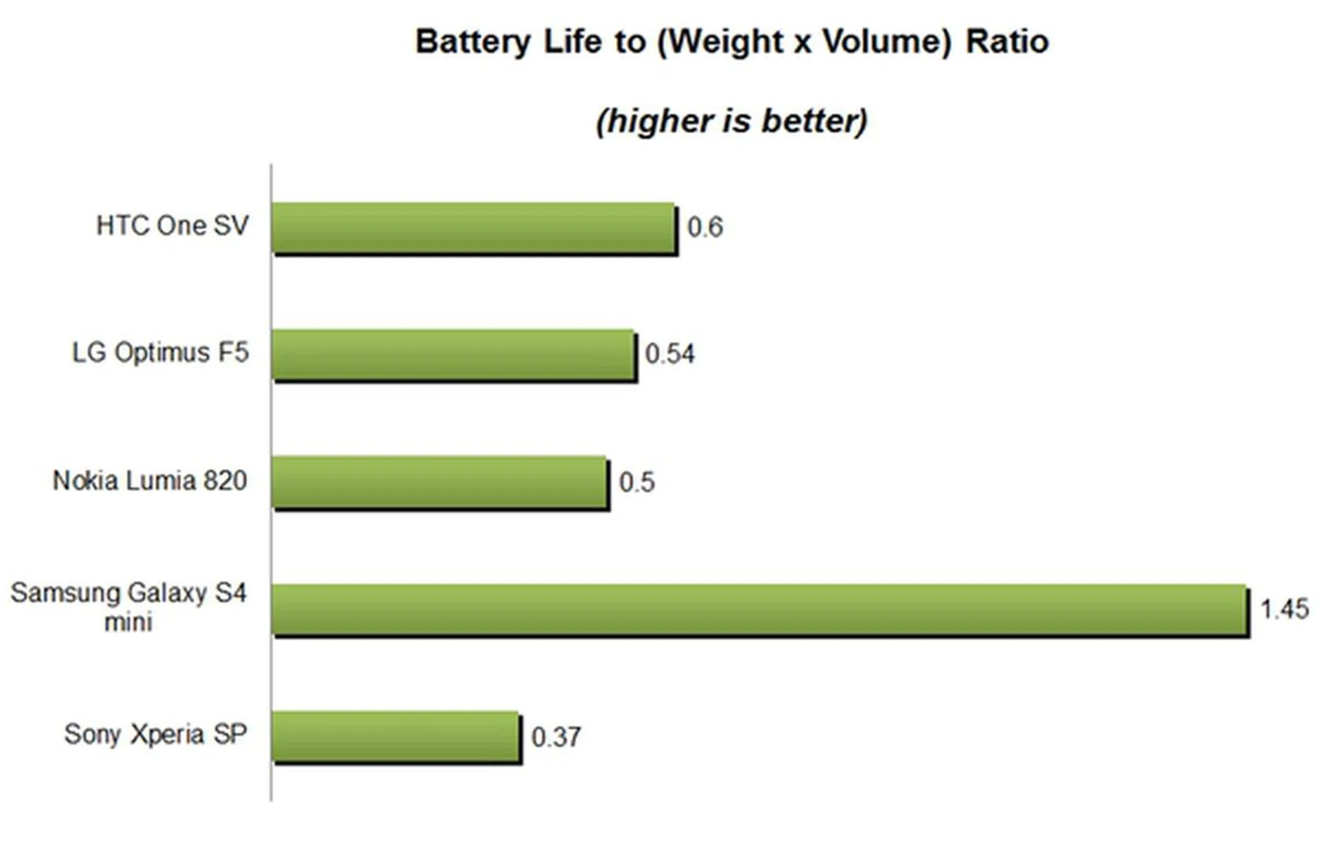 Moving on to our Portability Index, it was no surprise to see the Samsung Galaxy S4 mini excel as it had the longest battery mileage, the most compact physical form factor, the sleekest at just 8.94mm thin and the lightest phone at 107g. The HTC One SV takes up a distance second place, while Nokia's Lumia 820 fell a few more positions below due to its bulkier build and weight. Don't forget that part of the reason why the Lumia 820 has to put with its physical attributes if because of its integrated wireless Qi charging capability. To find out more, we've written more about this wireless charging standard over here. So in Nokia's case, it's trade-off between features and physical form. In fact, to ensure its leading phone is leaner, the upcoming Lumia 925 has kept the wireless charging capabilities integrated on its accessories and not in the phone.