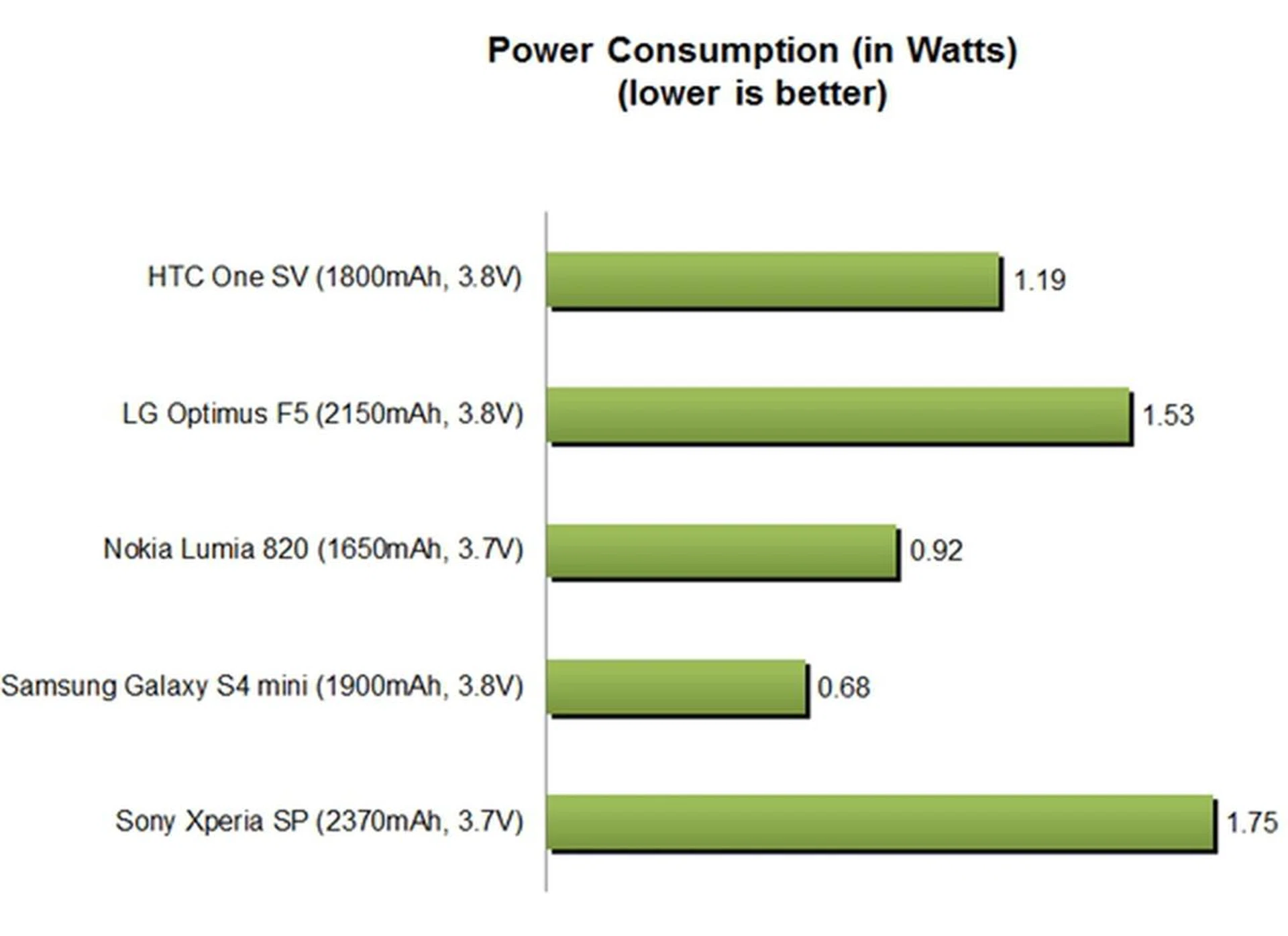 As for the other phones like HTC and LG, they are very middling performers with LG having a very high power consumption figure that's sapping its high capacity battery dry unusually fast. Of course, the worst of the lot is the Sony Xperia SP with its larger screen. You would think that the 4.6-inch screen is enough reason to give it some leeway for its outcome, but in actual fact, it's also performing below expectations when compared to other phones sporting a similar size and higher resolution screen.