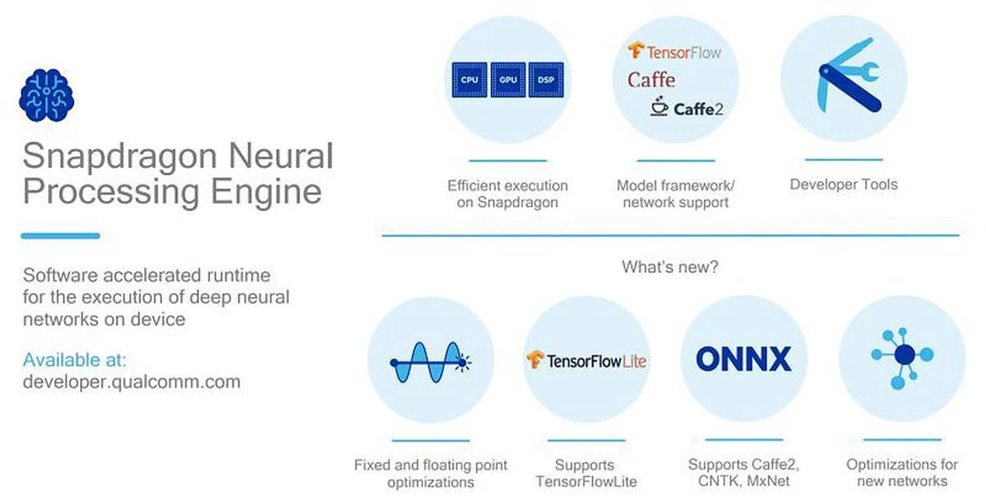 What about the software stack, how ready is that to tackle AI? Snapdragon’s Neural Processing Engine (NPE) is a software accelerated runtime that assists in the execution of deep neural networks (DNNs) on device and it now has an updated support network:-