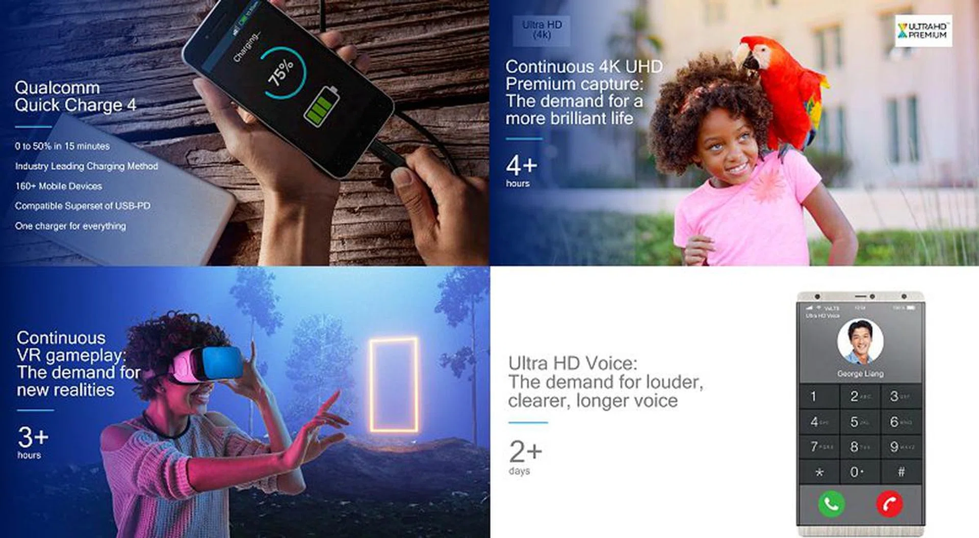 In a nutshell, Qualcomm is gunning for all day battery life and beyond coupled with super-fast charging, continuous 4K HDR capture for more than 4 hours (adhering to the UltraHD Premium certification), over 3 hours of continuous VR gameplay and over two days of non-stop Ultra HD voice calls.