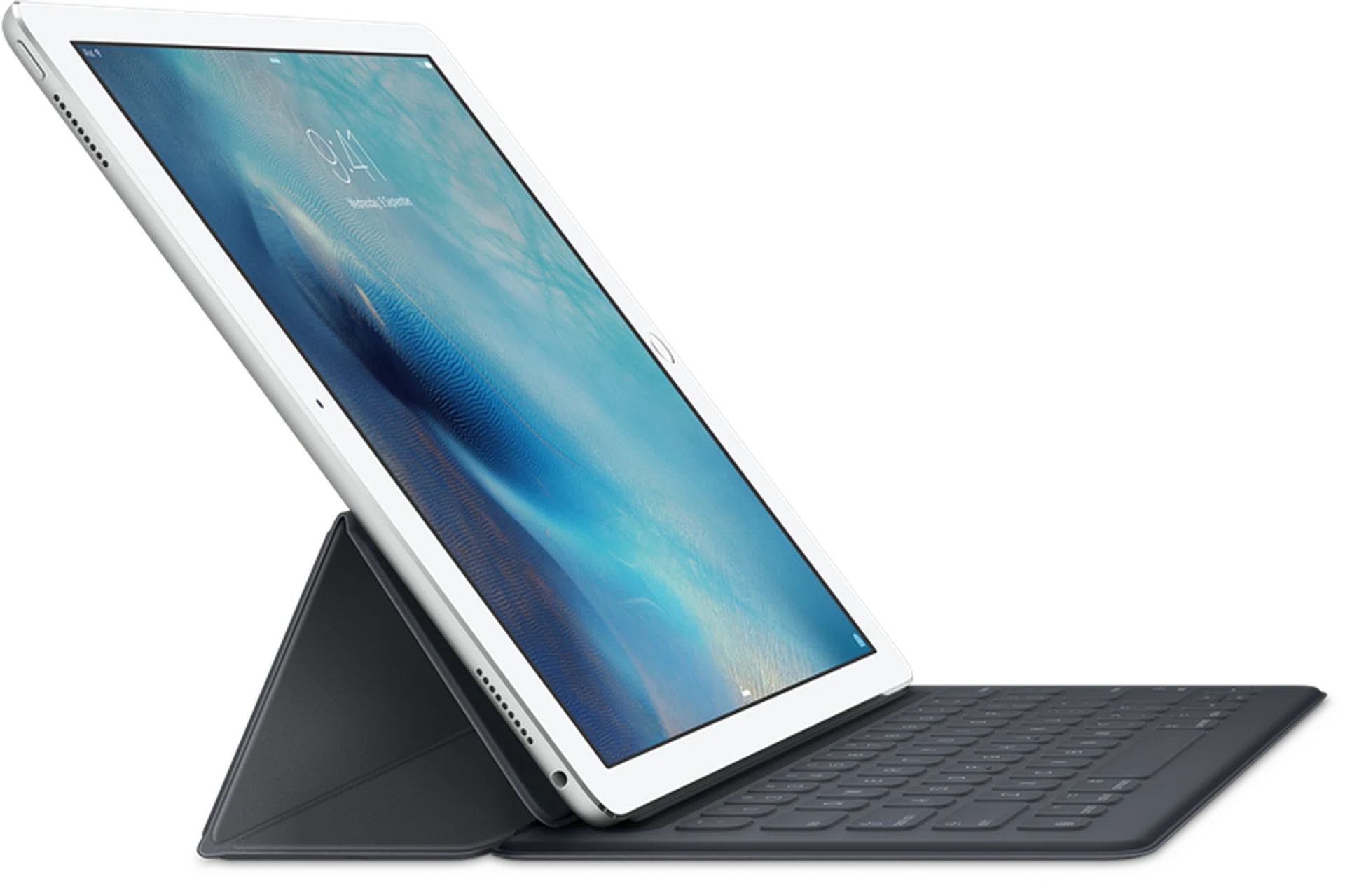 To go with the Pro, Apple is releasing a full-sized folding keyboard cover, which looks a lot like Microsoft's Surface Pro keyboard. The keyboard attaches magnetically and folds over the iPad to protect it. It also has a built-in stand.