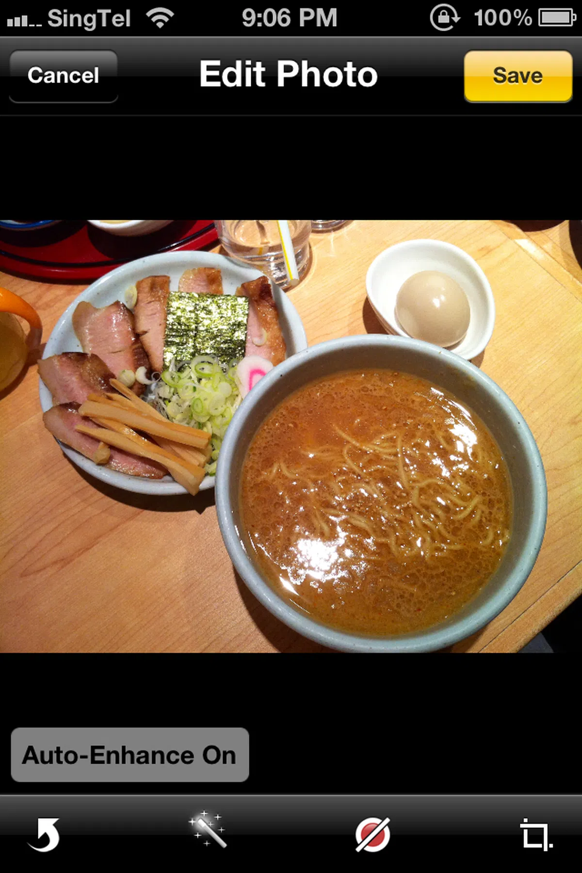 Photo editing is now a native feature within iOS 5. Each photo that is taken gives you a one-touch auto enhance function and red-eye reduction, on top of rotating and cropping it. You can also constrain your crop to an aspect ratio (such as 4 x 3, 5 x 7, 16 x 9).
